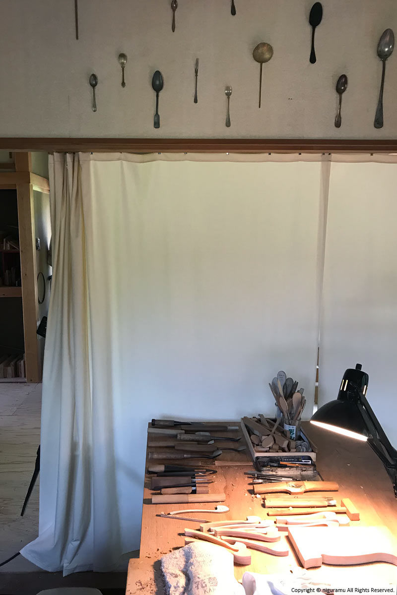 色々な形の木製スプーンやフォークの展示販売に加え、製作の参考のために各地で収集してきた多種材のカトラリーと書物の展示も致します。