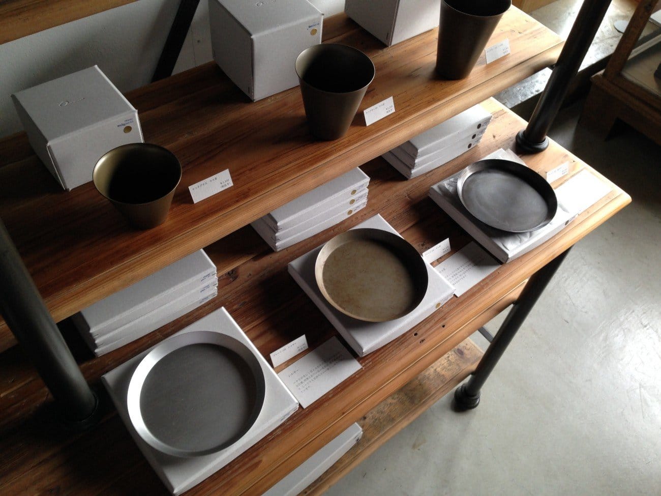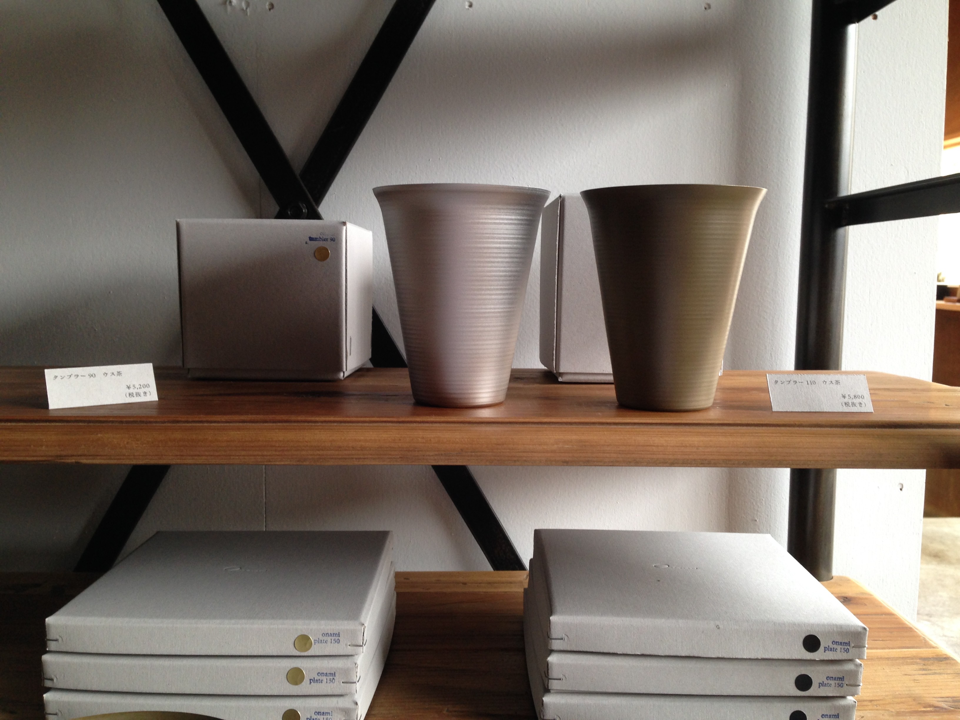 また、「RetRe」は虫喰いの製材した木の板を展示。「Onami」は作業風景のパネル展示と、ヘラ絞りの商品ができるまでの作業ことの工程の形で展示します。普段は見れない製作の裏側の紹介をしていますので興味のある方は是非お運びください。