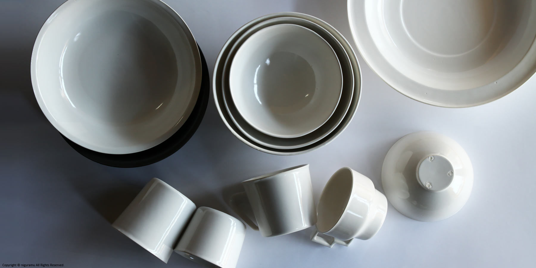 「静謐で落ち着きのある日常使いの器」をテーマに、ろくろと、石膏型を使う型打ちという技法を主に用いて制作しています。