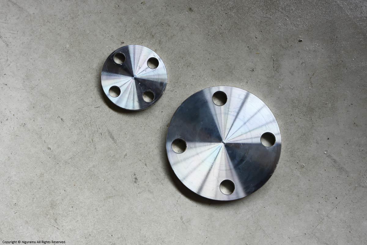 • Weight, SUS304。左が直径90mm(580g)、右が155mm(2400g)。