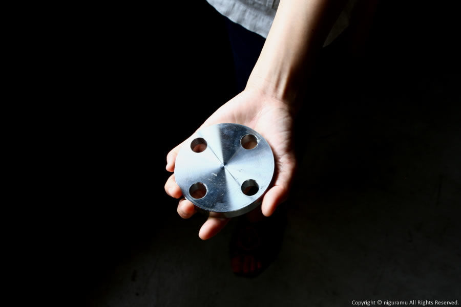 • 「Weight SUS304, D155(直径155mm、重さ2400g)」を手に持って。