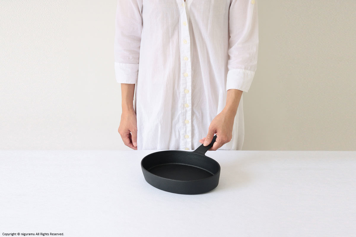 調理時は鉄器が十分に熱くなってから食材を入れて下さい。鉄器に焦げ付き難くなります。また、食材の加熱が早くなり、うまみが引き立ちます。