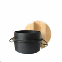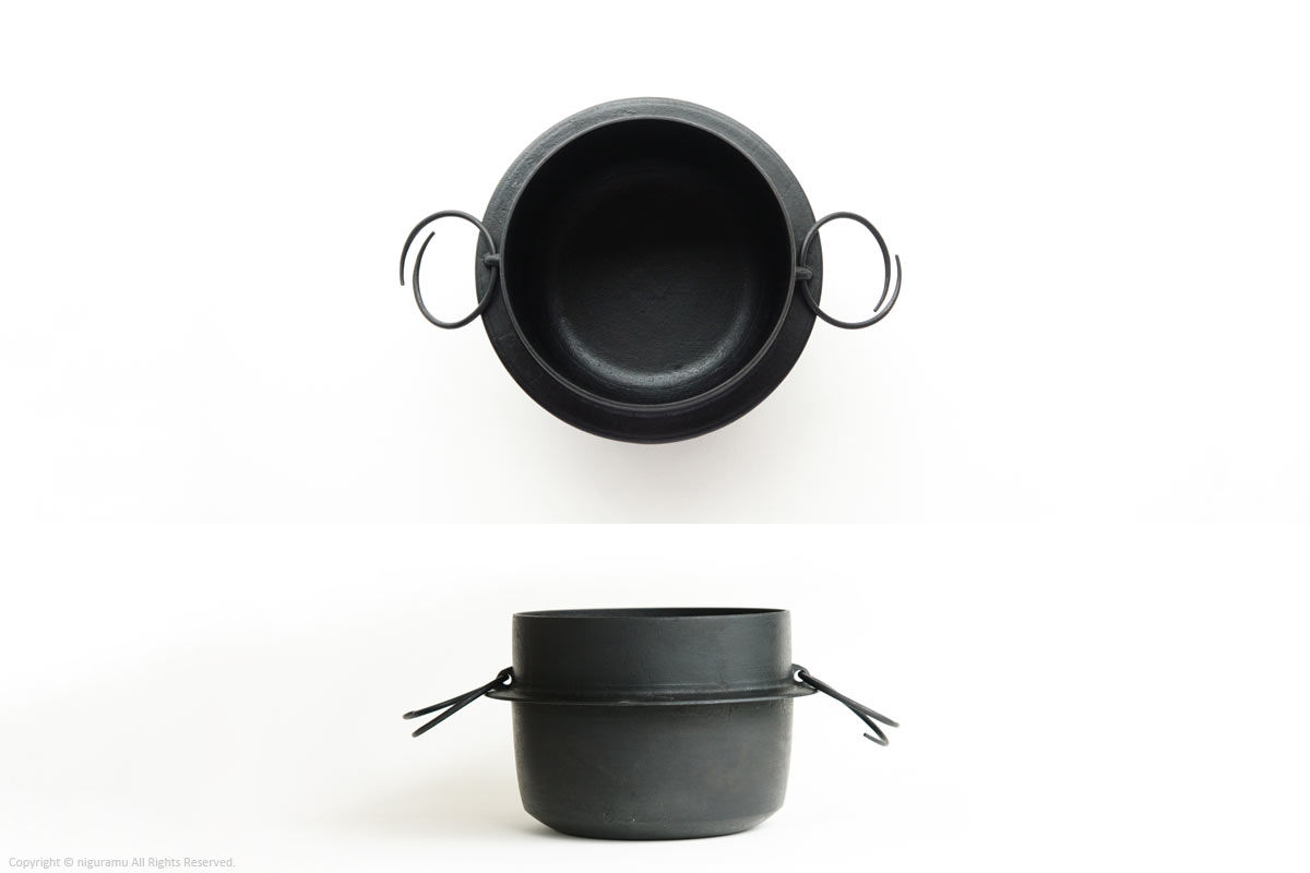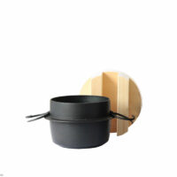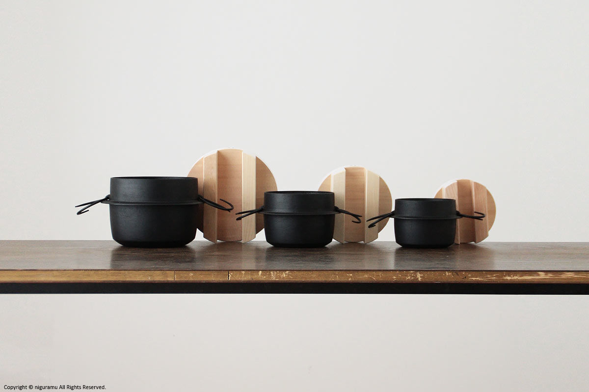 羽釜本体: 195"diam (240"OD) × 150"H mm 木フタ: 220"diam × 85"H mm 総重量: 3900g 裏面: 130"diam mm |