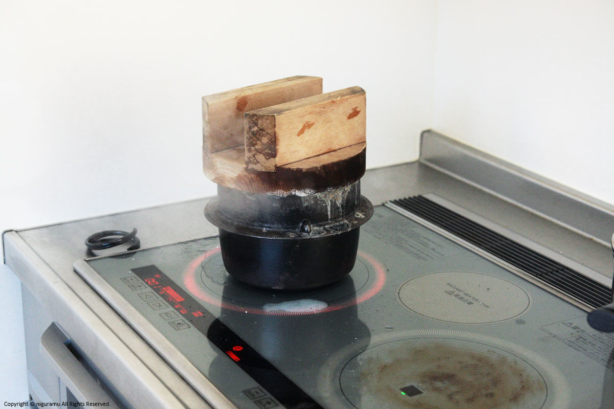 IHでご飯を炊いているところ。勿論、ガスでもOK。