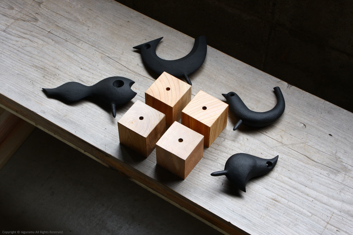 - 持ち運びの際は必ず木台部分をお持ち下さい。鉄のオーナメント部分を持つと、抜けて木台が落下する恐れがあります。