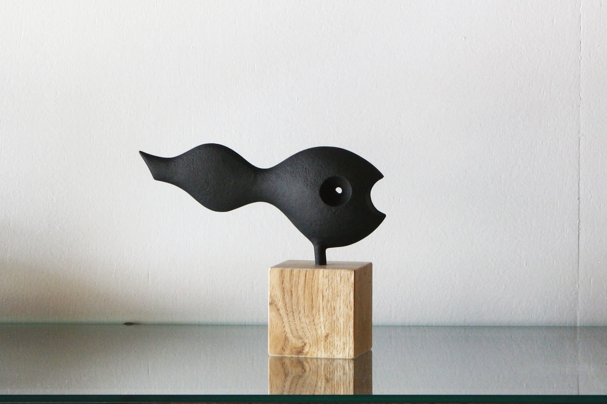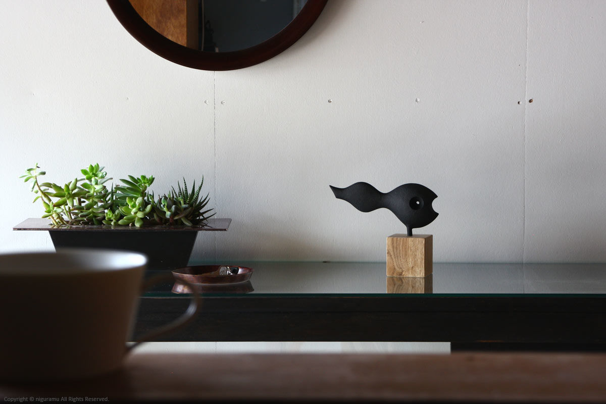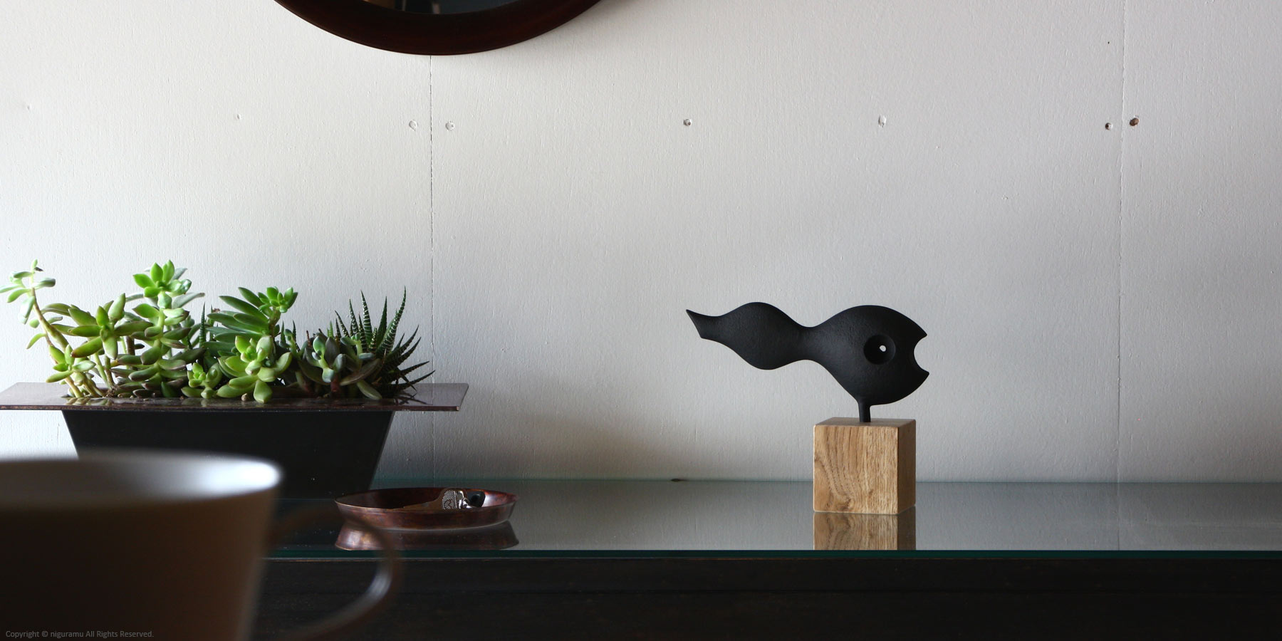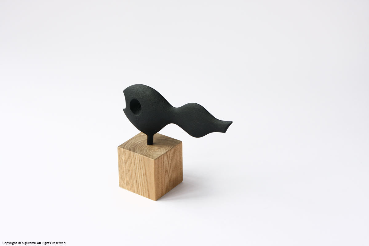 - お届け時には鉄のオーナメント部分と木台は離れていますので、木台の穴にしっかりと差し込んでセットして下さい。差し込みが不十分ですと安定が悪く転倒の恐れがあります。