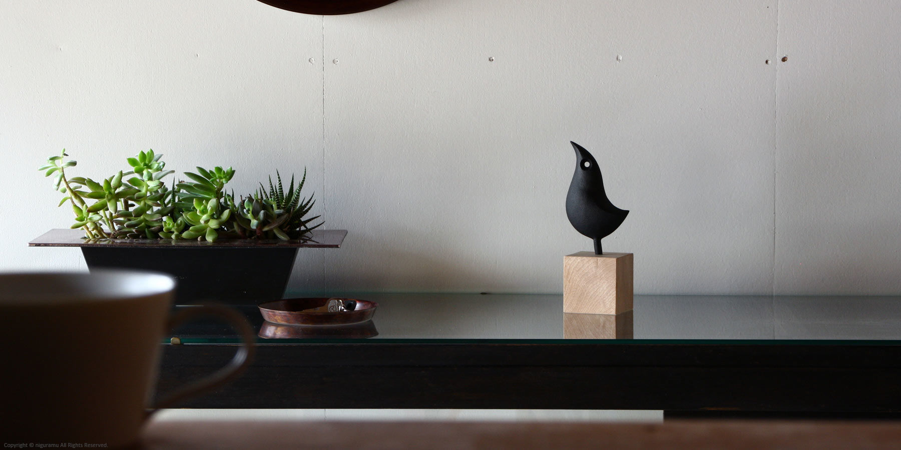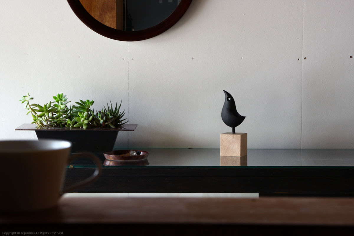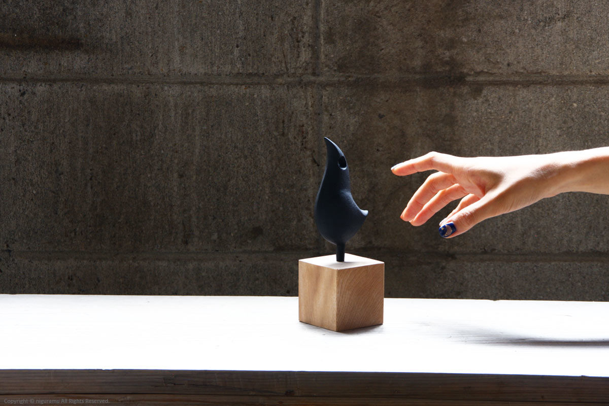 - 持ち運びの際は必ず木台部分をお持ち下さい。鉄のオーナメント部分を持つと、抜けて木台が落下する恐れがあります。
