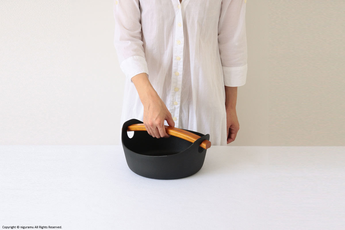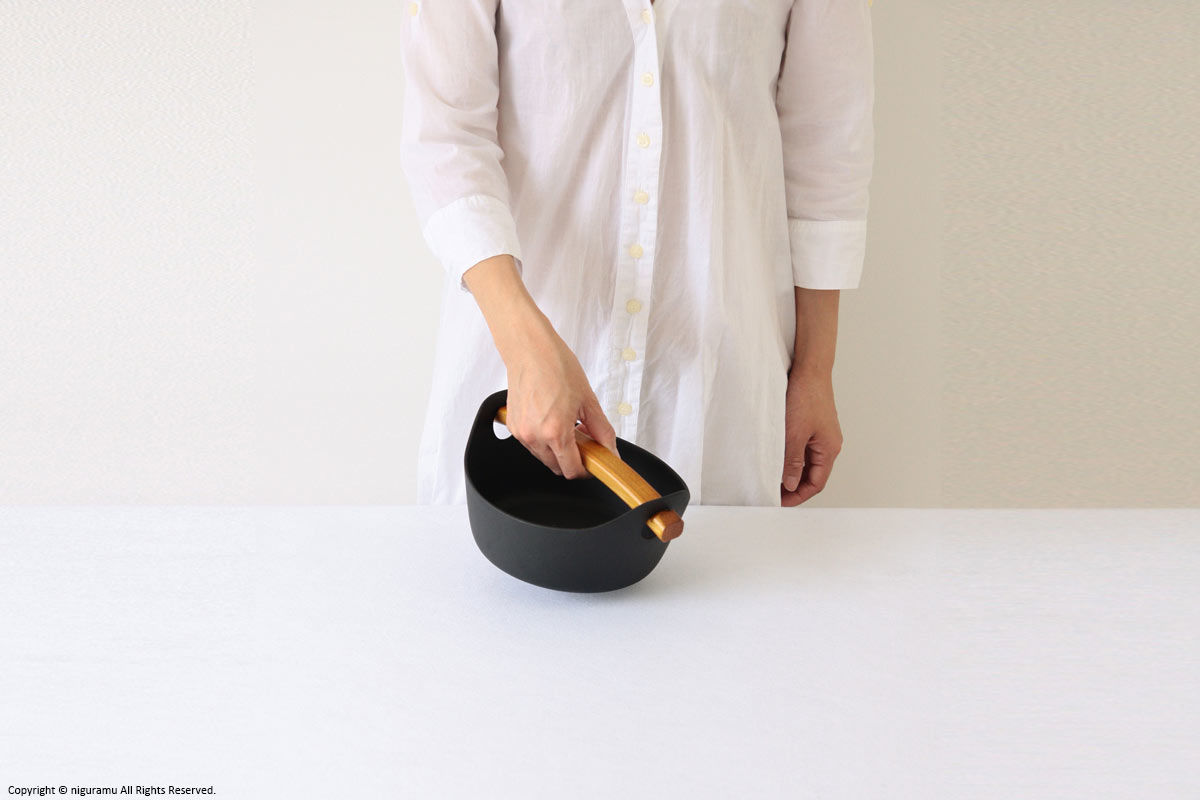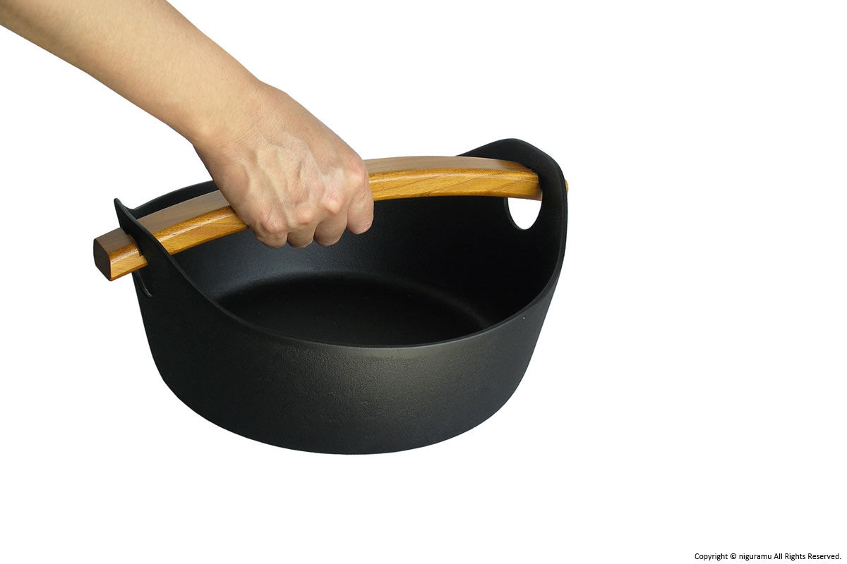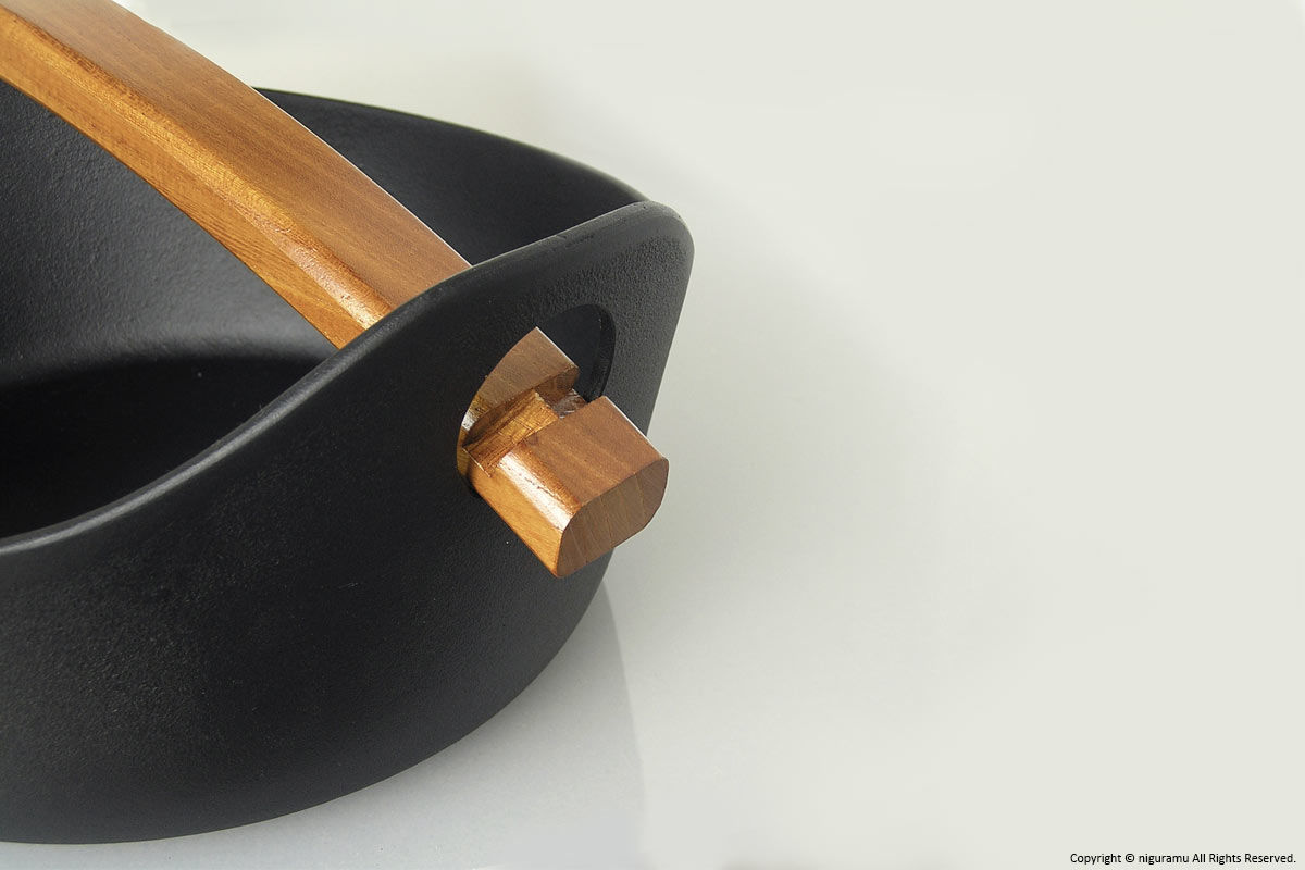 - 調理後、木の取っ手を取り付けて持ち上げたり移動させる際は溝にしっかりはまっている事をご確認下さい。不十分ですと落下の危険があります。