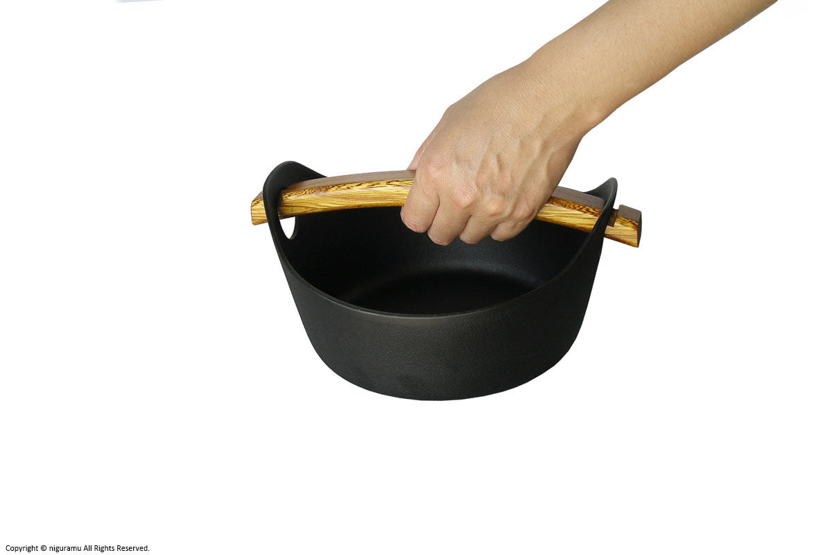 - 調理中は木の取っ手をはずし、熱源から下ろした後に取り付けて下さい。