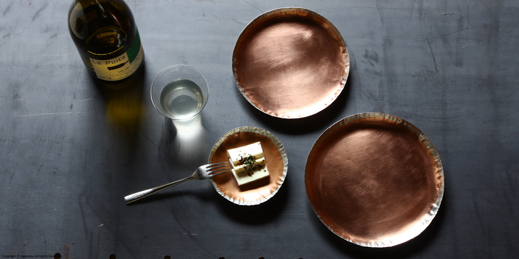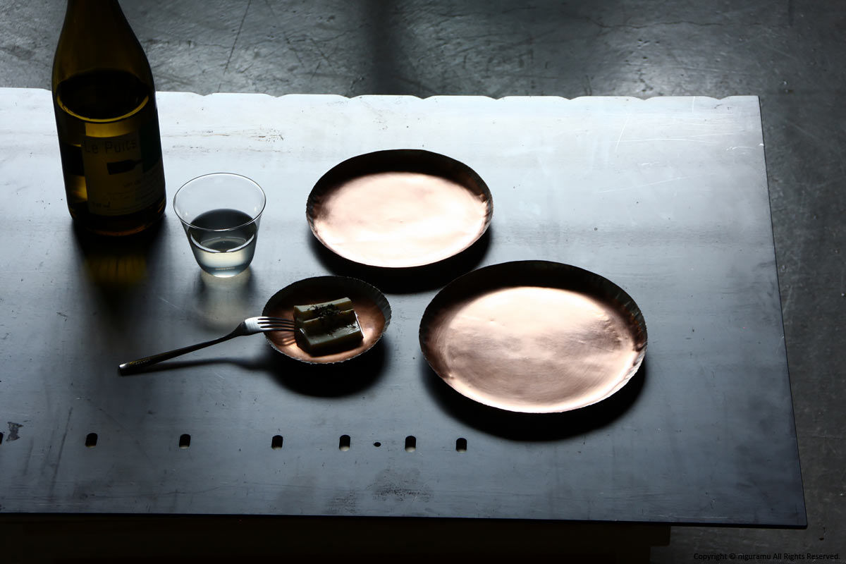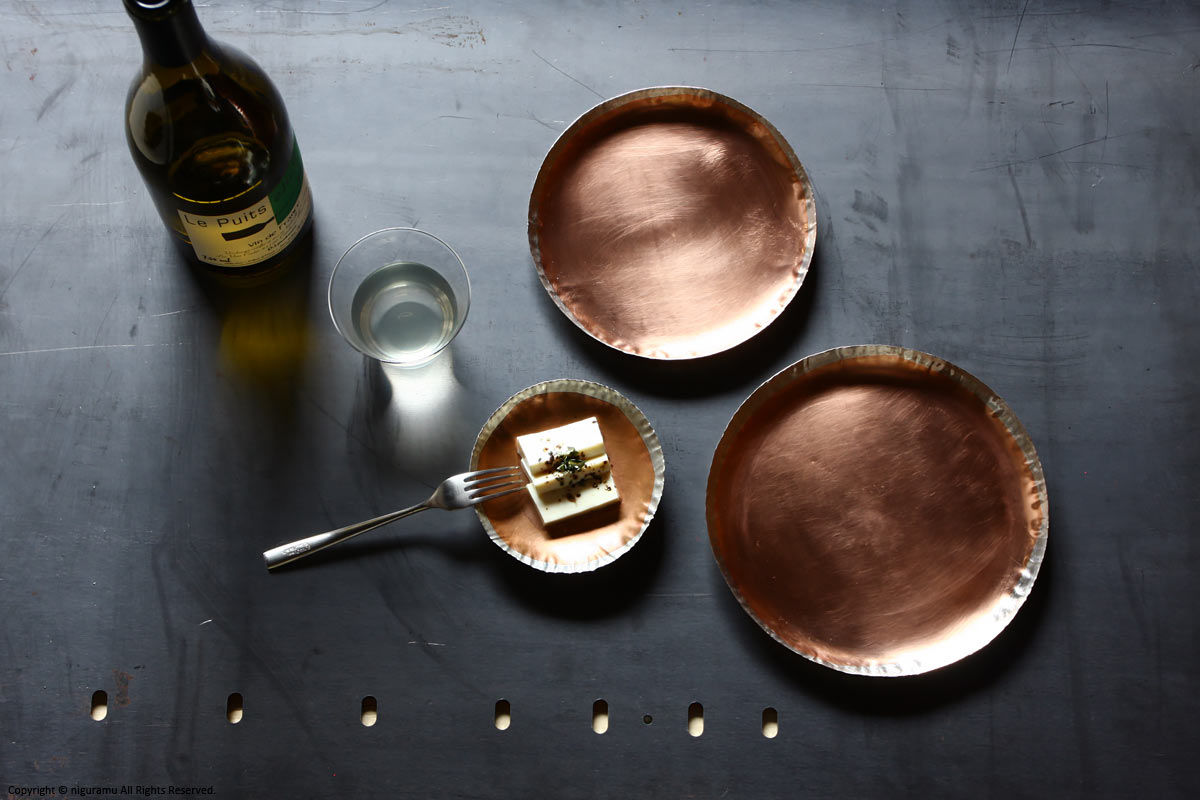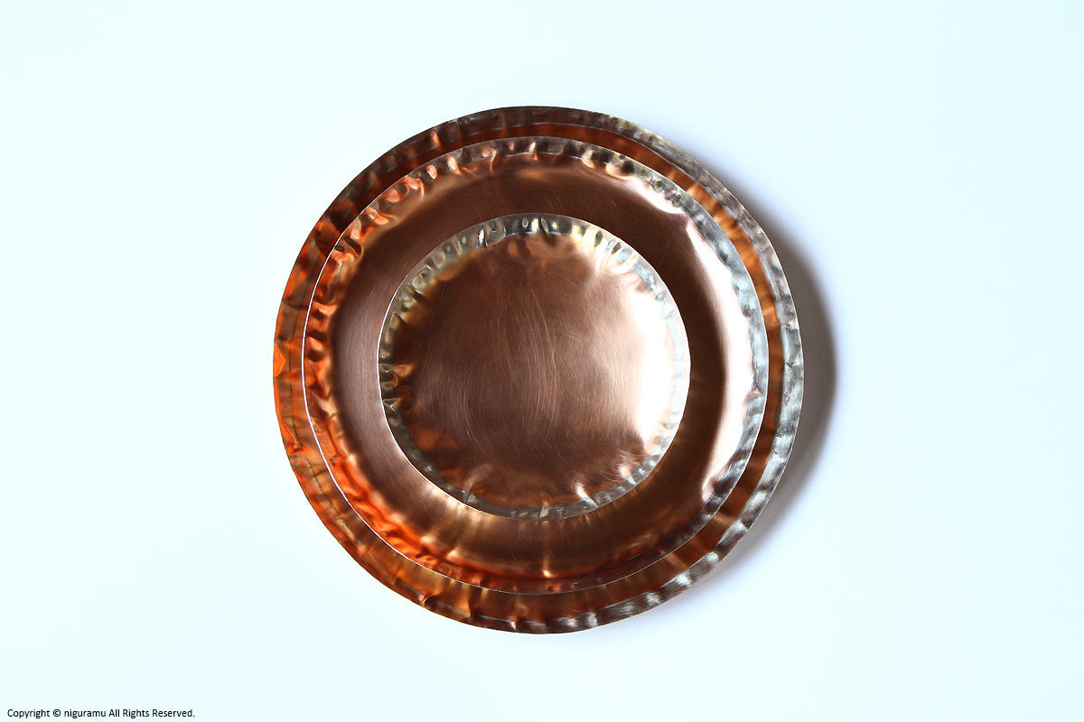 - 縁のみ錫メッキを施していますので銅の色味は経年変化します。また食材により変色することがあります。