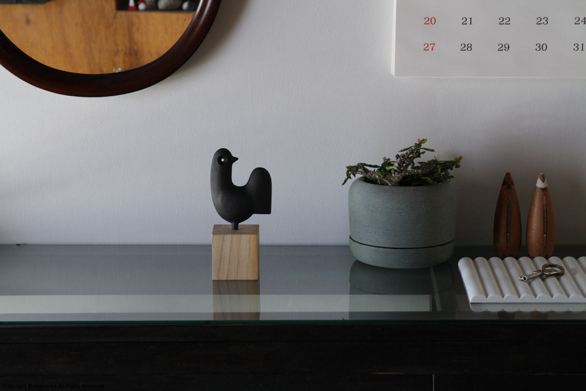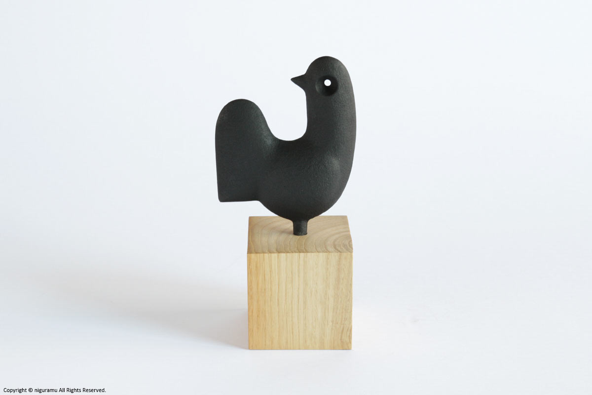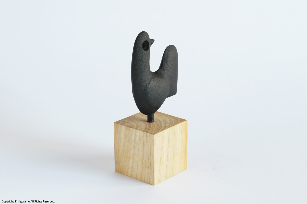 - お届け時には鉄のオーナメント部分と木台は離れていますので、木台の穴にしっかりと差し込んでセットして下さい。差し込みが不十分ですと安定が悪く転倒の恐れがあります。