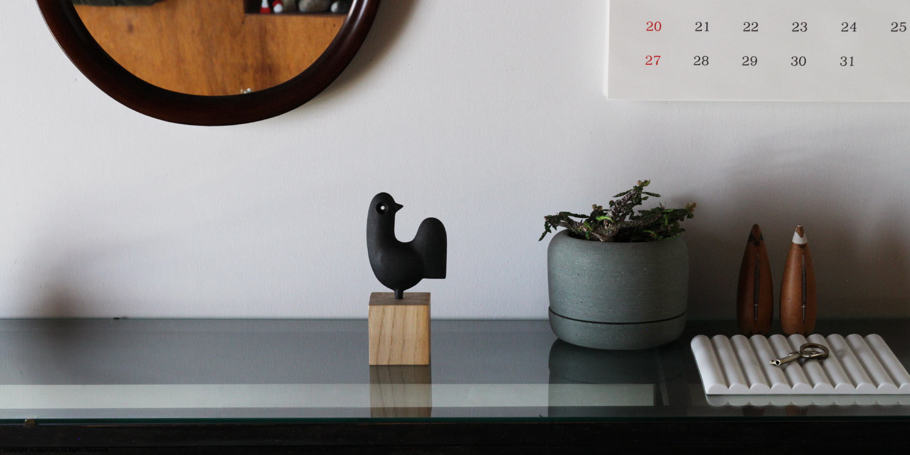 - 持ち運びの際は必ず木台部分をお持ち下さい。鉄のオーナメント部分を持つと、抜けて木台が落下する恐れがあります。