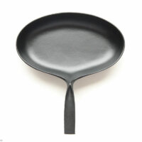 付け根部分がきゅっとつままれた持ち手へとつながっていく楕円形のパンはちょっぴりめずらしい形ですが、丸みを帯びたおおらかなイメージの鍋部分と短めの持ち手の組み合わせがかわいらしいバランス。
