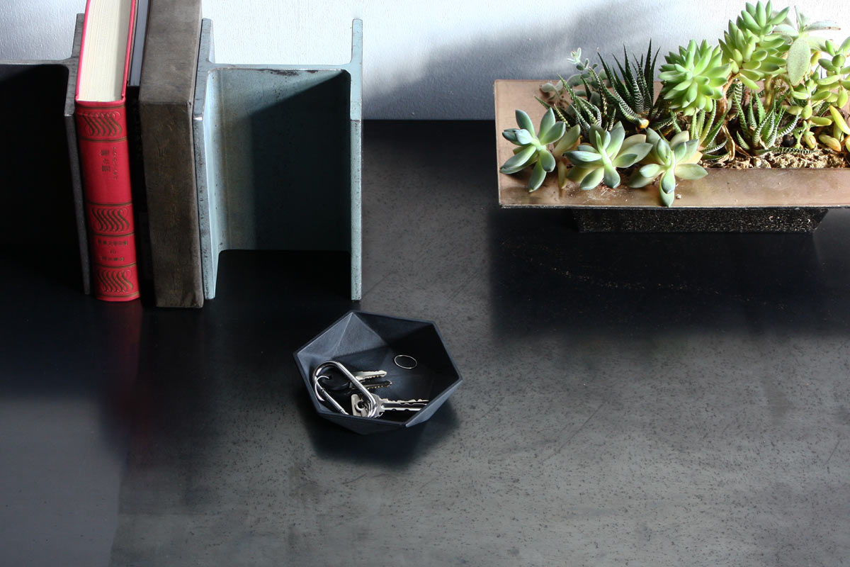 岩手県南部鉄器の多面体六角トレイ。表と裏で表情の違うトレイとして使えます。