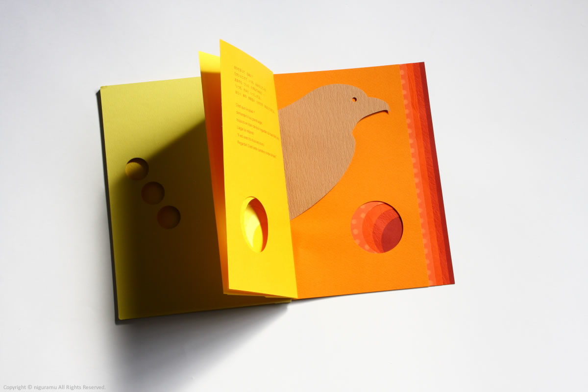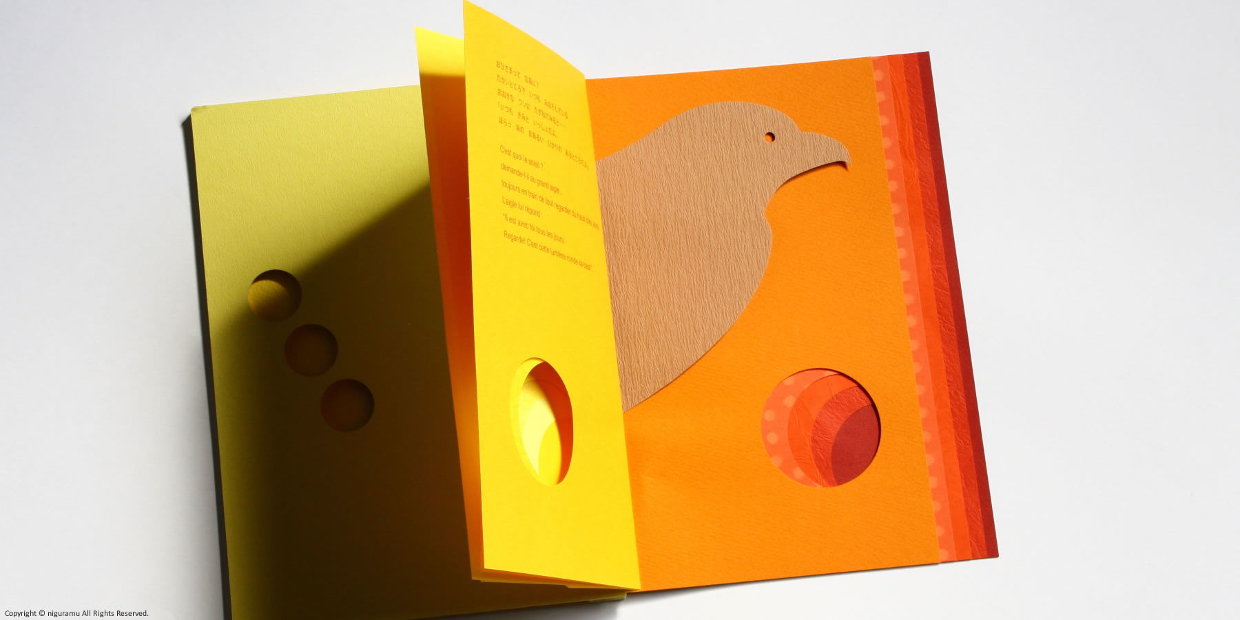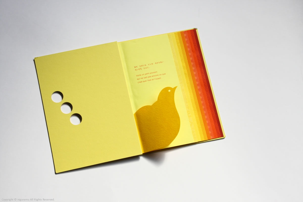 紙の質感や色合いで時間の流れを表現し、紙本来の美しさを最大限に活かした絵本です。(日本語、フランス語の2か国語表記)