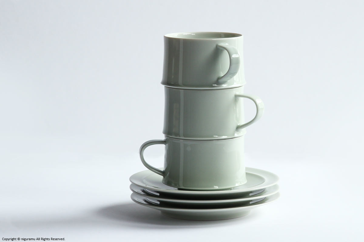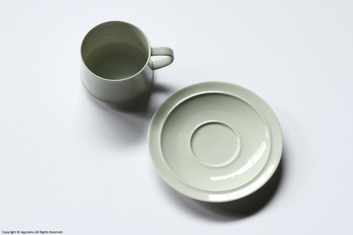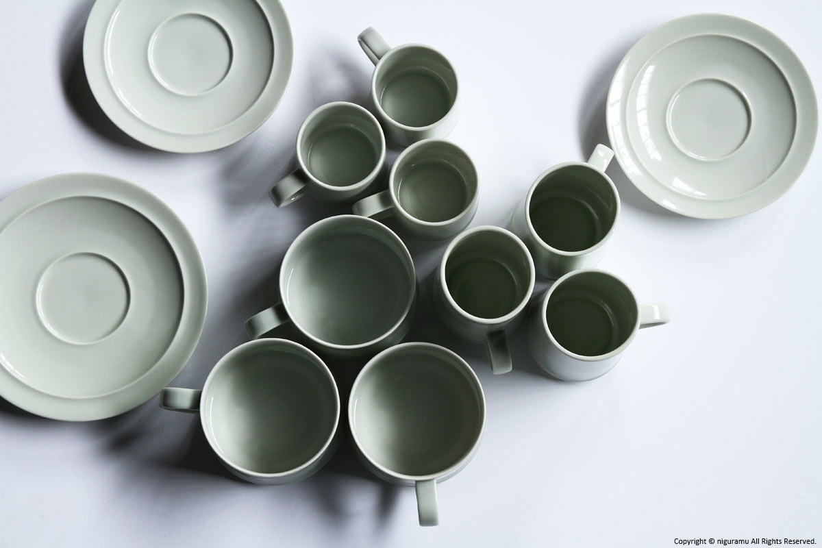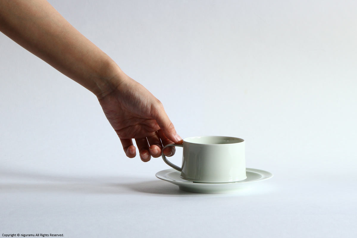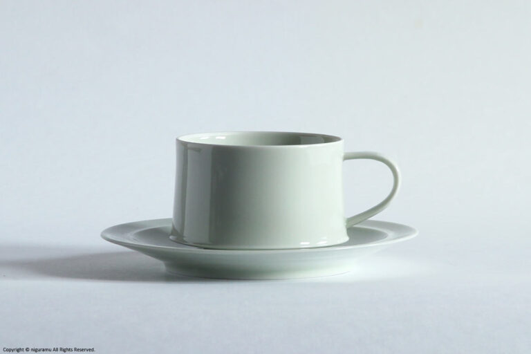 「カップ&ソーサー」は薄いカップの歪みを抑えるため、窯に入れる際に口縁(飲み口)を下にして焼成します。その為、口縁には釉薬をかけておらず、窯から出した後に削って滑らかな口当たりに仕上げています。