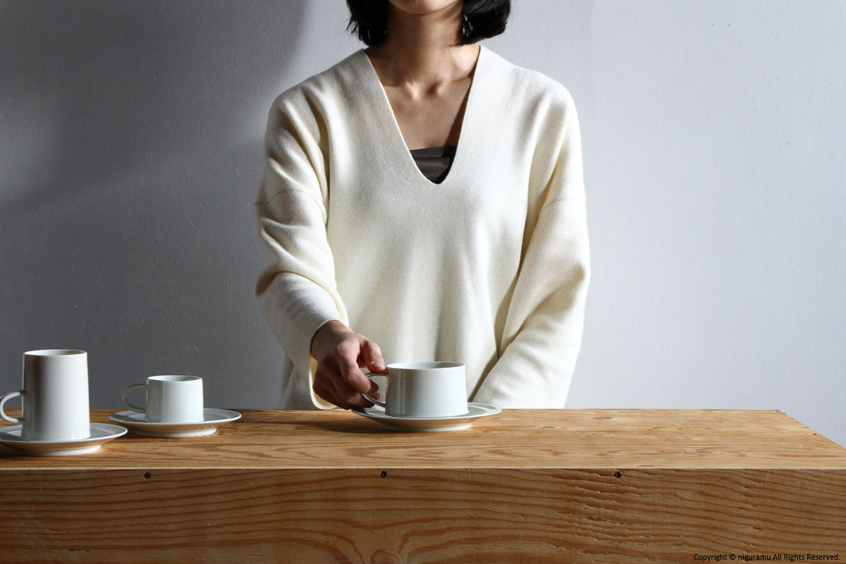 「ハイカップ&ソーサー」と「デミタスカップ&ソーサー」のカップは、高台を下にして焼成する一般的な製法で、飲み口部分に釉薬がかかり、高台にはかかっていません。 - カップの種類により口縁(飲み口)の厚みが異なります。