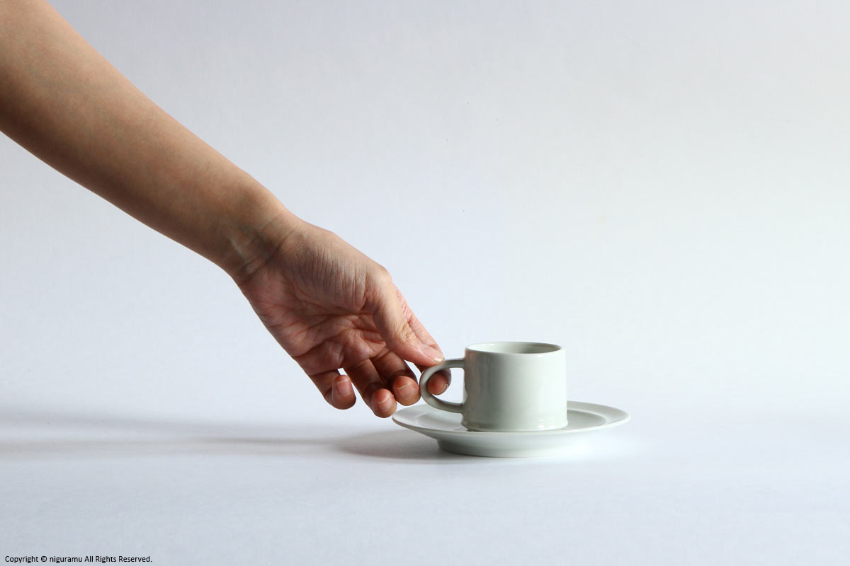 「ハイカップ&ソーサー」と「デミタスカップ&ソーサー」のカップは、高台を下にして焼成する一般的な製法で、飲み口部分に釉薬がかかり、高台にはかかっていません。 - カップの種類により口縁(飲み口)の厚みが異なります。