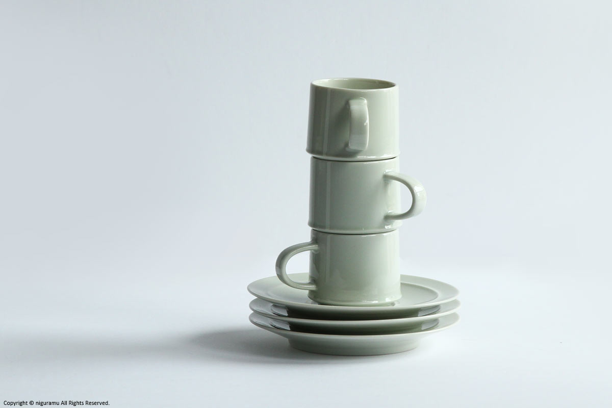 「カップ&ソーサー」は薄いカップの歪みを抑えるため、窯に入れる際に口縁(飲み口)を下にして焼成します。その為、口縁には釉薬をかけておらず、窯から出した後に削って滑らかな口当たりに仕上げています。