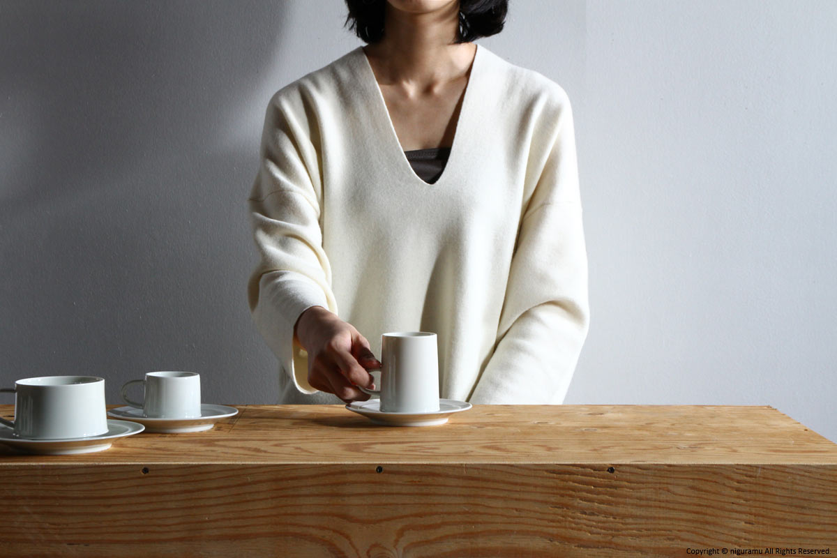 「ハイカップ&ソーサー」と「デミタスカップ&ソーサー」のカップは、高台を下にして焼成する一般的な製法で、飲み口部分に釉薬がかかり、高台にはかかっていません。 - カップの種類により口縁(飲み口)の厚みが異なります。