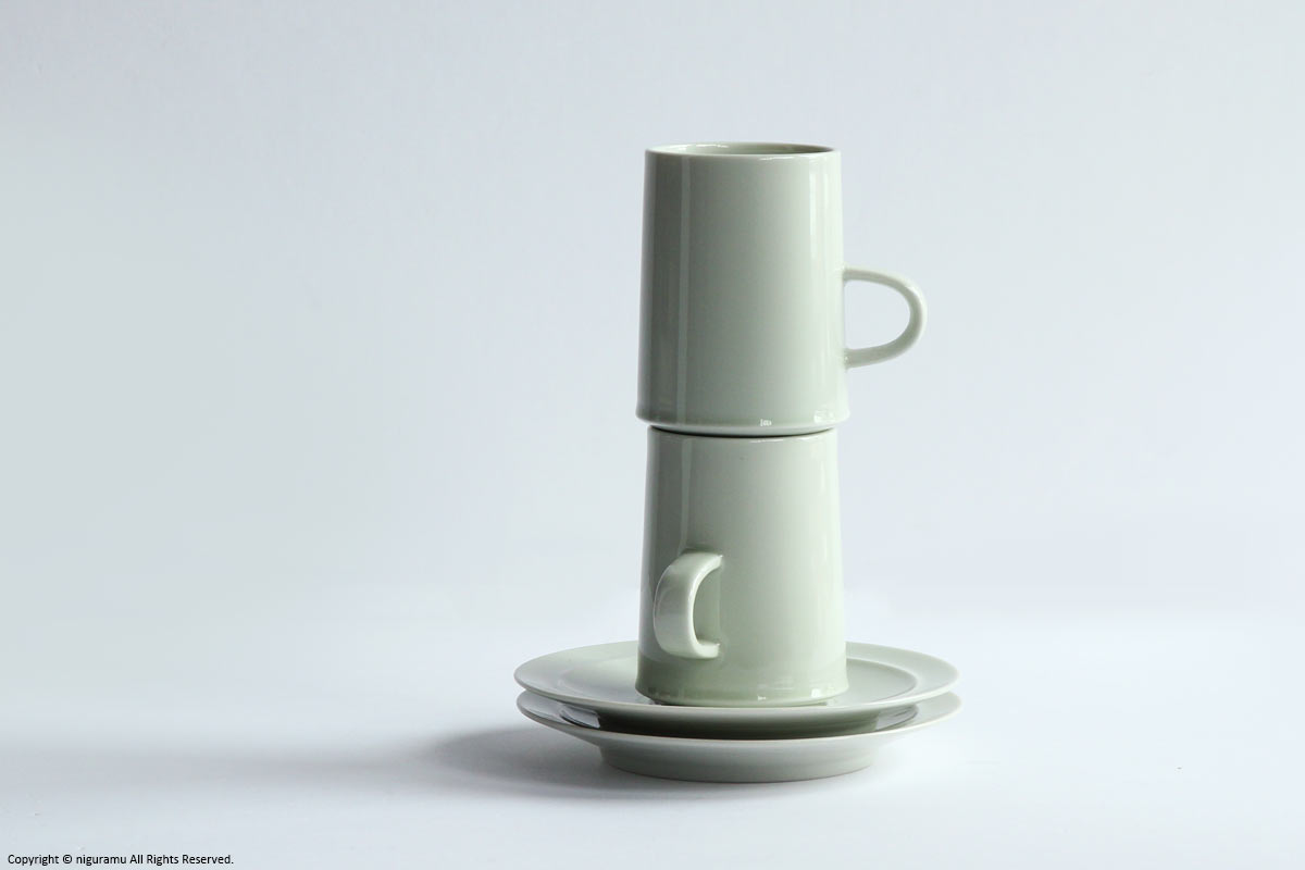 「カップ&ソーサー」は薄いカップの歪みを抑えるため、窯に入れる際に口縁(飲み口)を下にして焼成します。その為、口縁には釉薬をかけておらず、窯から出した後に削って滑らかな口当たりに仕上げています。