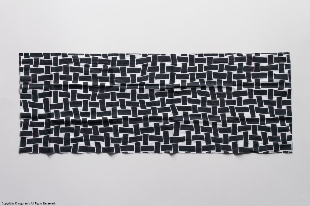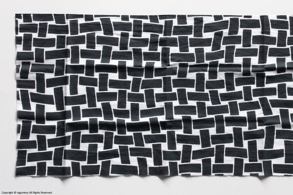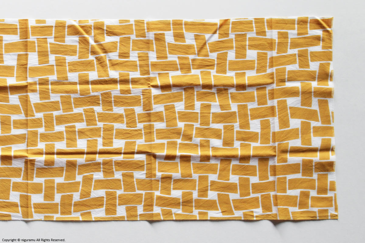 - 注染(ちゅうせん)という「型を使って布に防染糊を置き、たたんだ生地の上から染料を注ぐ」という方法で染められています。染めの特性上、若干の色ムラや柄のにじみがあります。