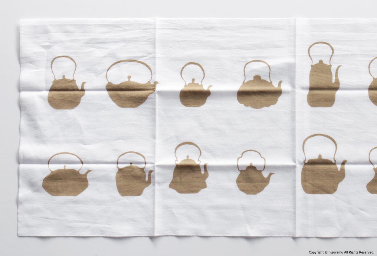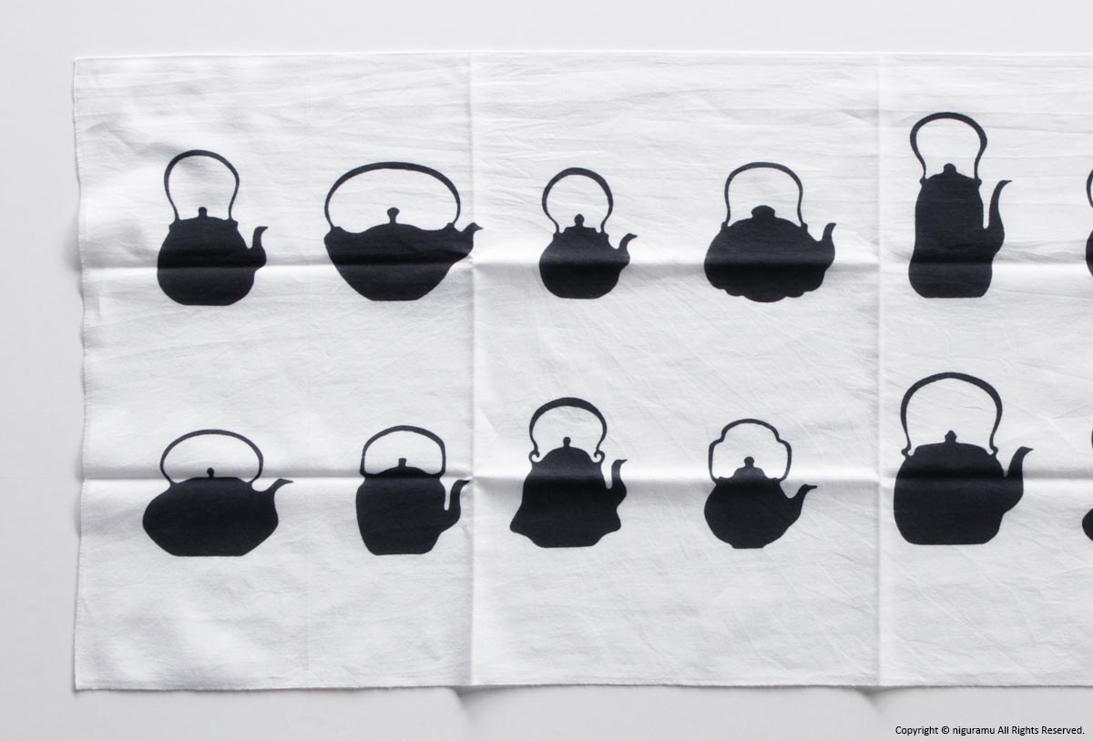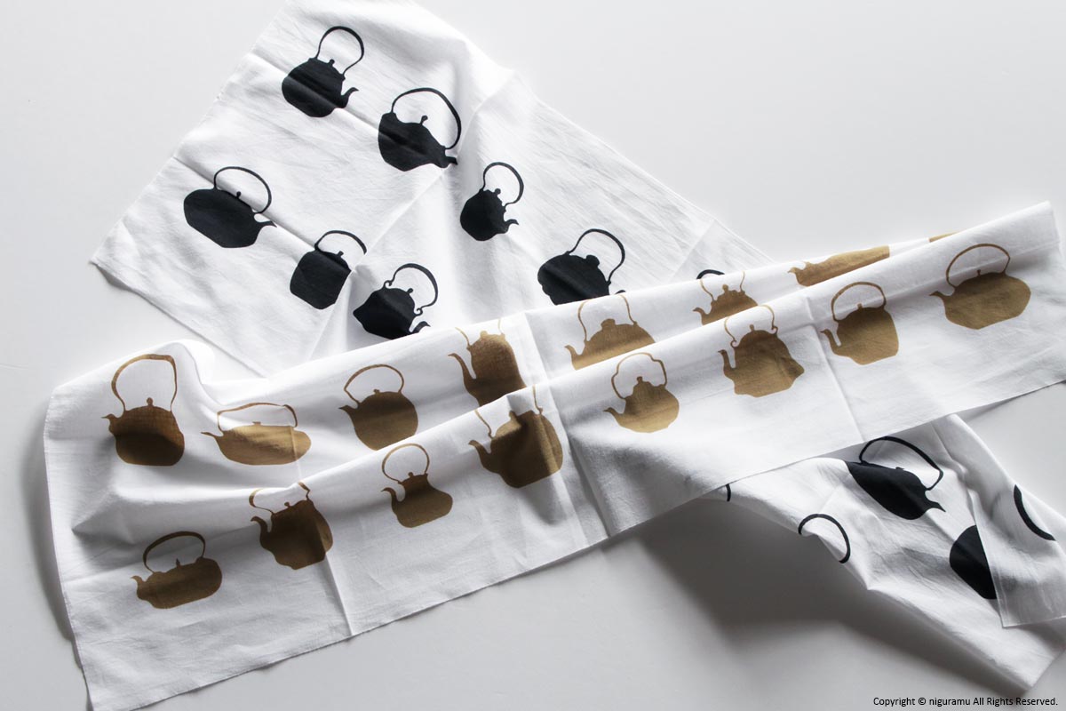 - 注染(ちゅうせん)という「型を使って布に防染糊を置き、たたんだ生地の上から染料を注ぐ」という方法で染められています。染めの特性上、若干の色ムラや柄のにじみがあります。