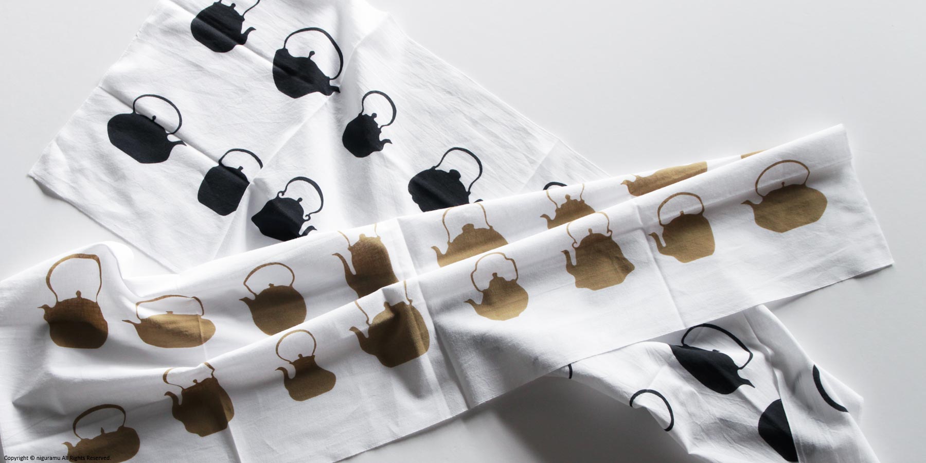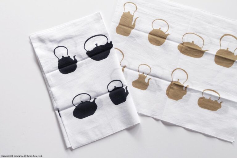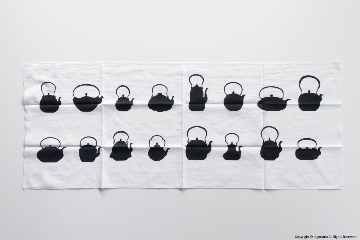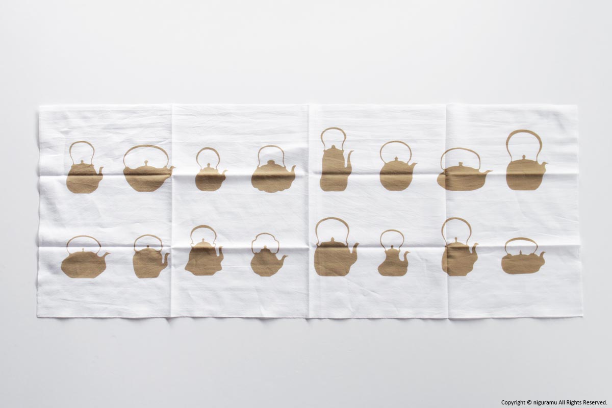 - 注染(ちゅうせん)という「型を使って布に防染糊を置き、たたんだ生地の上から染料を注ぐ」という方法で染められています。染めの特性上、若干の色ムラや柄のにじみがあります。