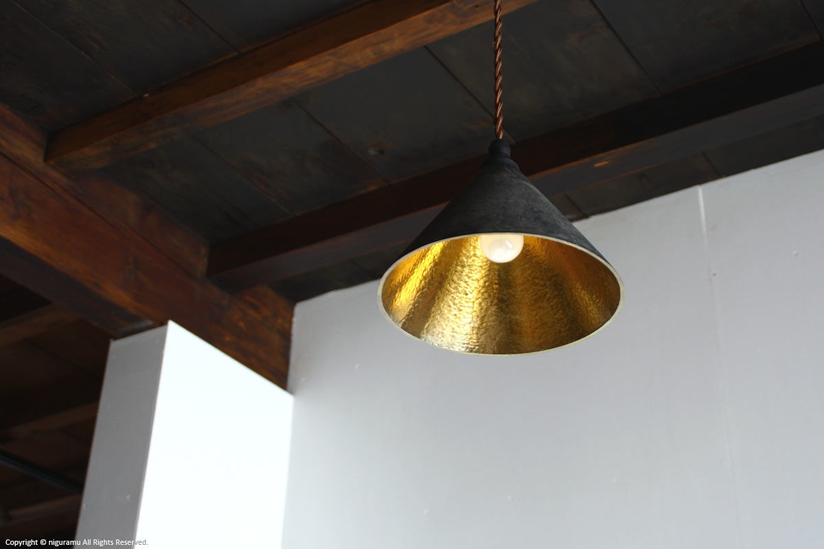 奥:ペンダントランプ 鋳肌, 円錐 / 黒ムラ(内部鍛金) -