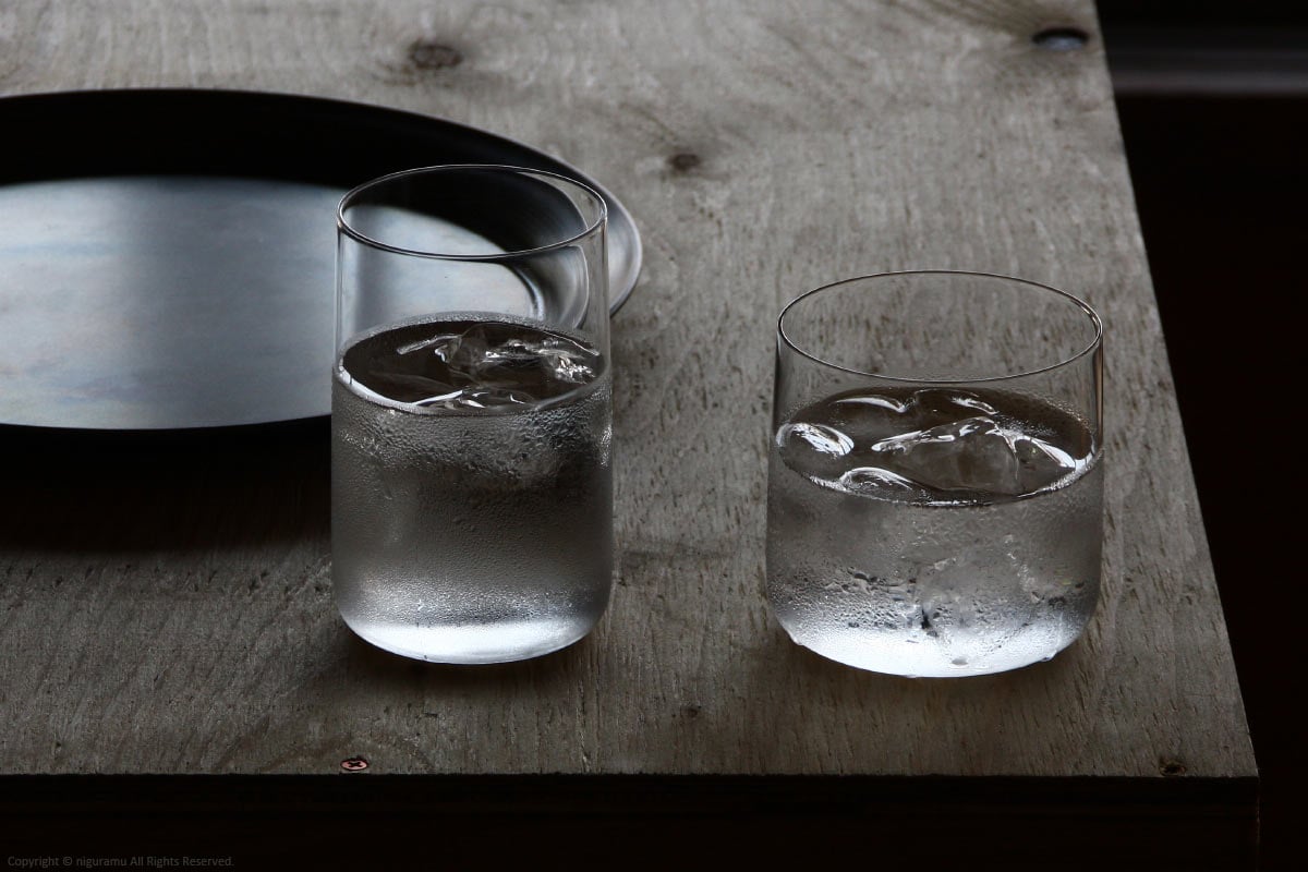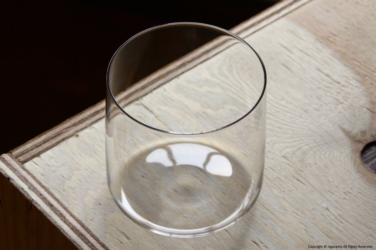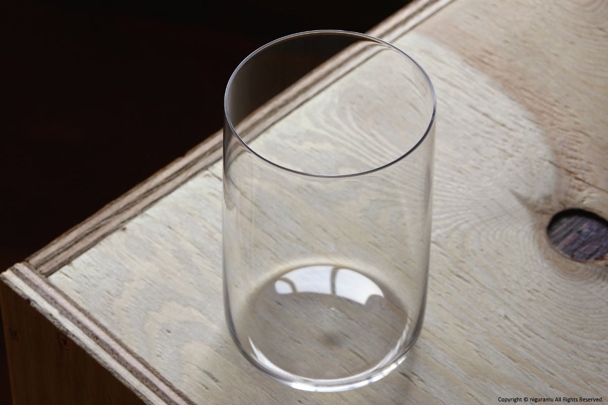 ガラスの厚みは1.2~1.5mm程度。薄すぎず厚すぎず、口当たりが良い。画像は「S」。