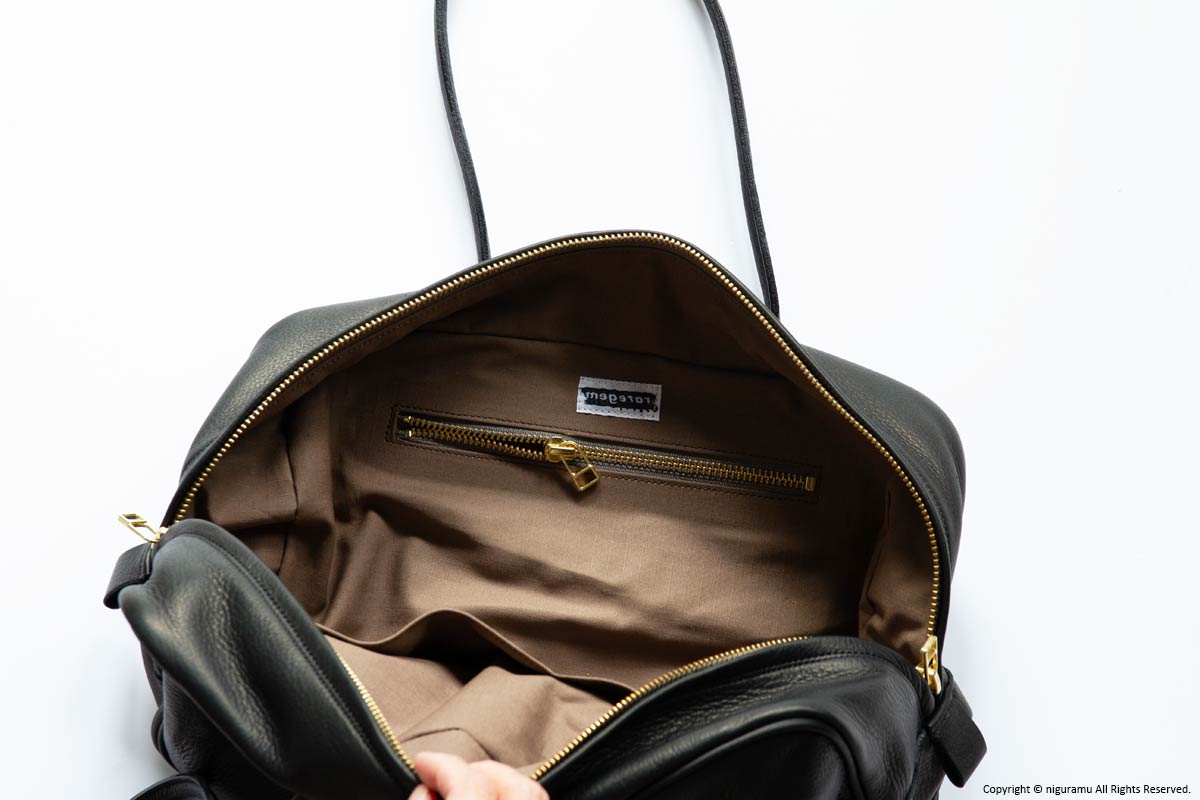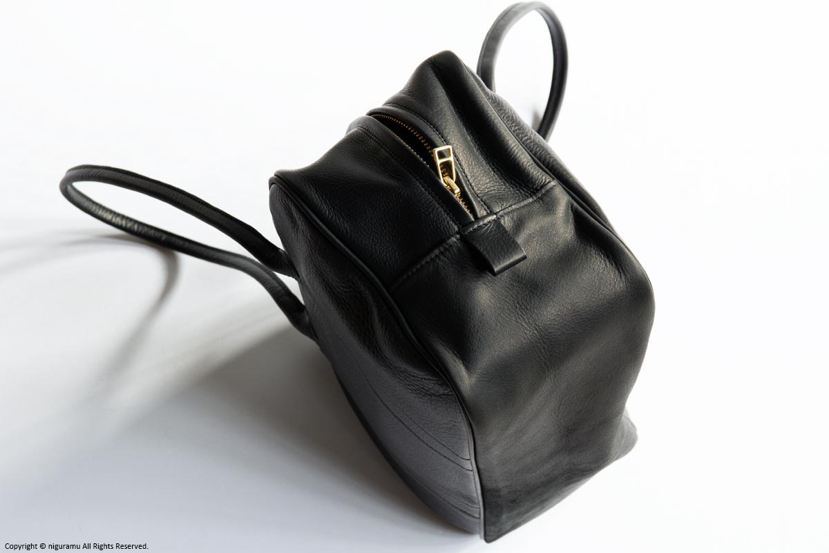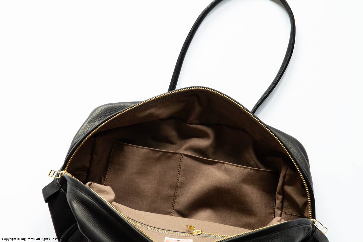 | 材質 | 牛革(バッグ本体), 真鍮(ジッパー), リップストップ生地(裏地/綿100%) |