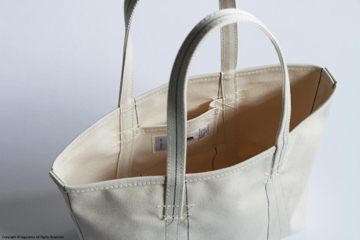| 材質 | 綿100% (本体:4号帆布, ハンドル:ヘリンボンテープ, ハンドル内:11号帆布) |