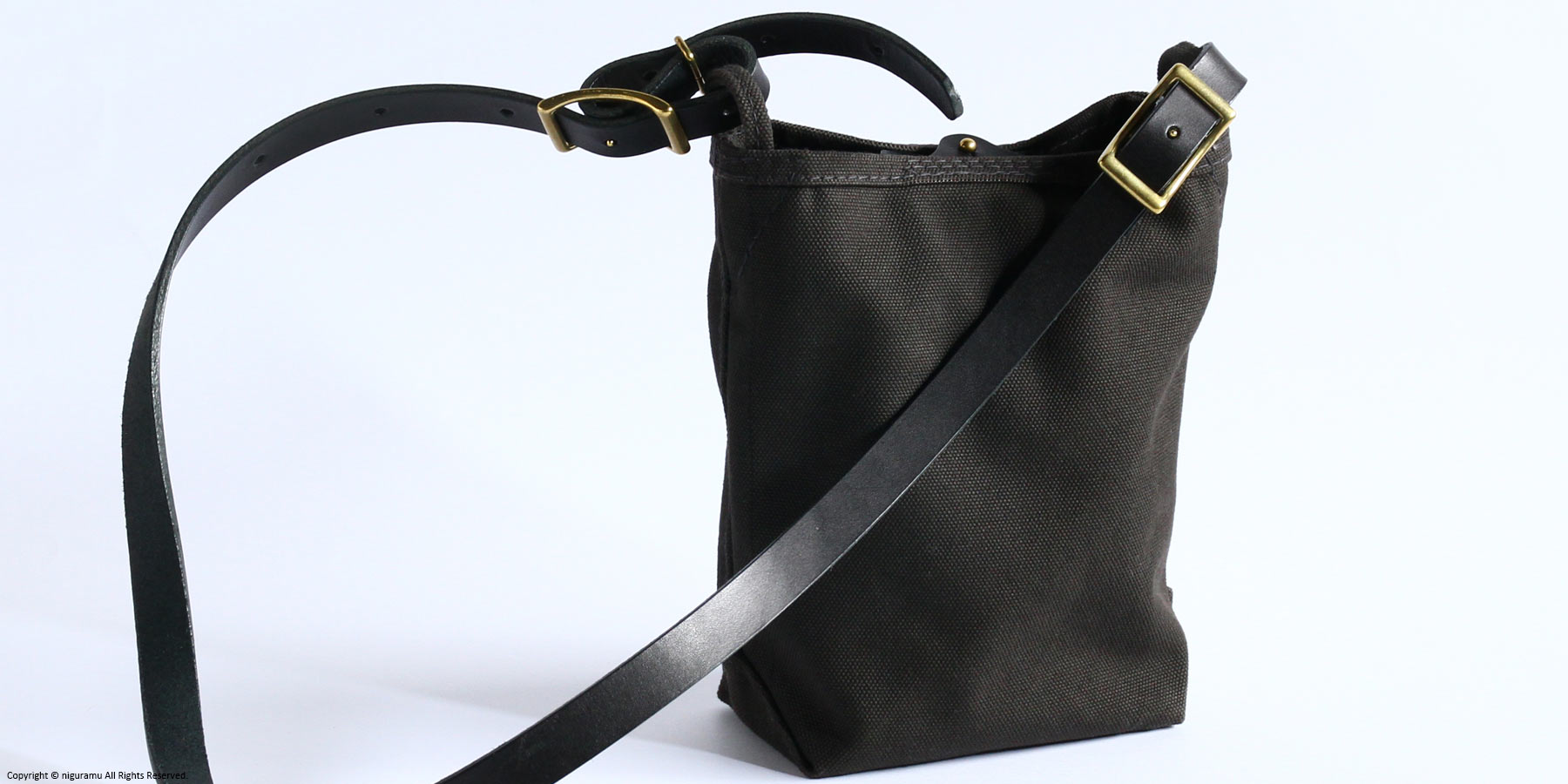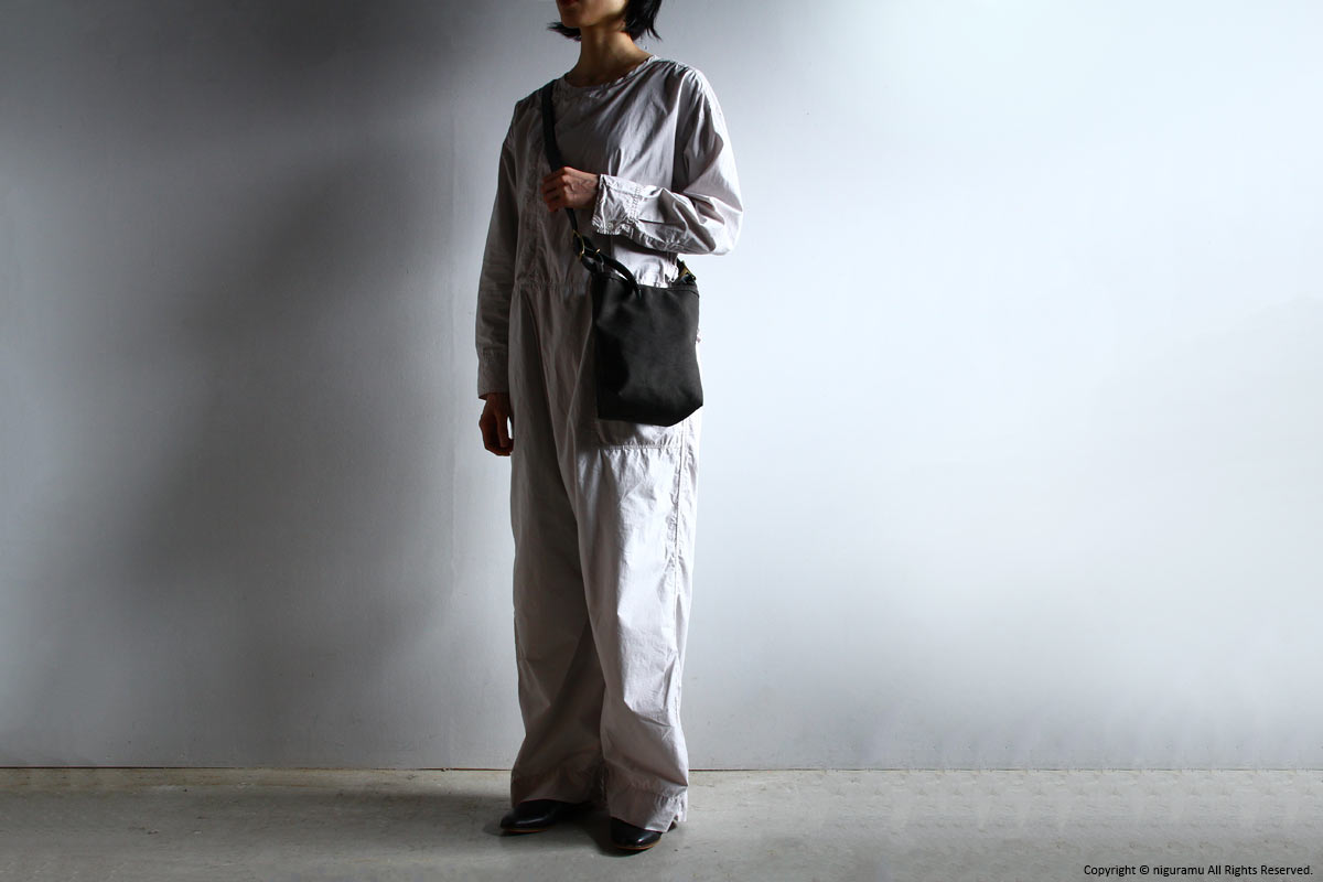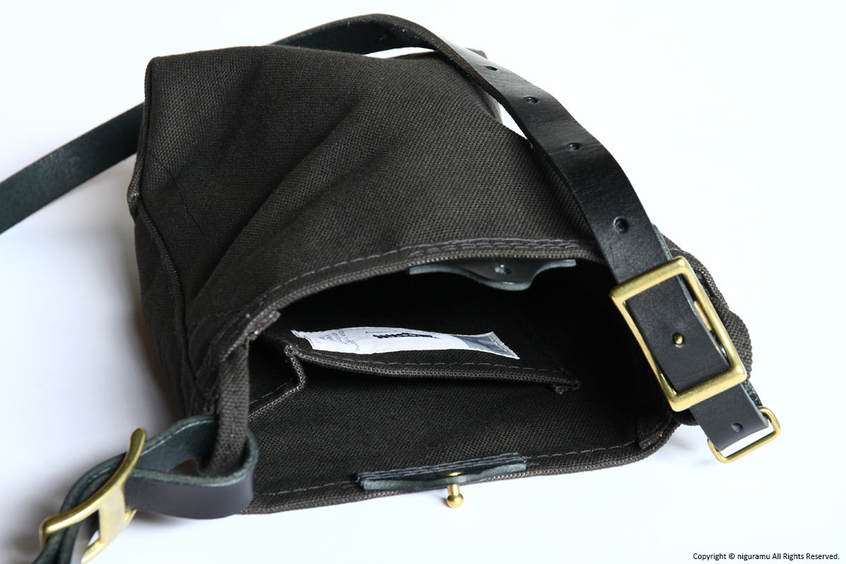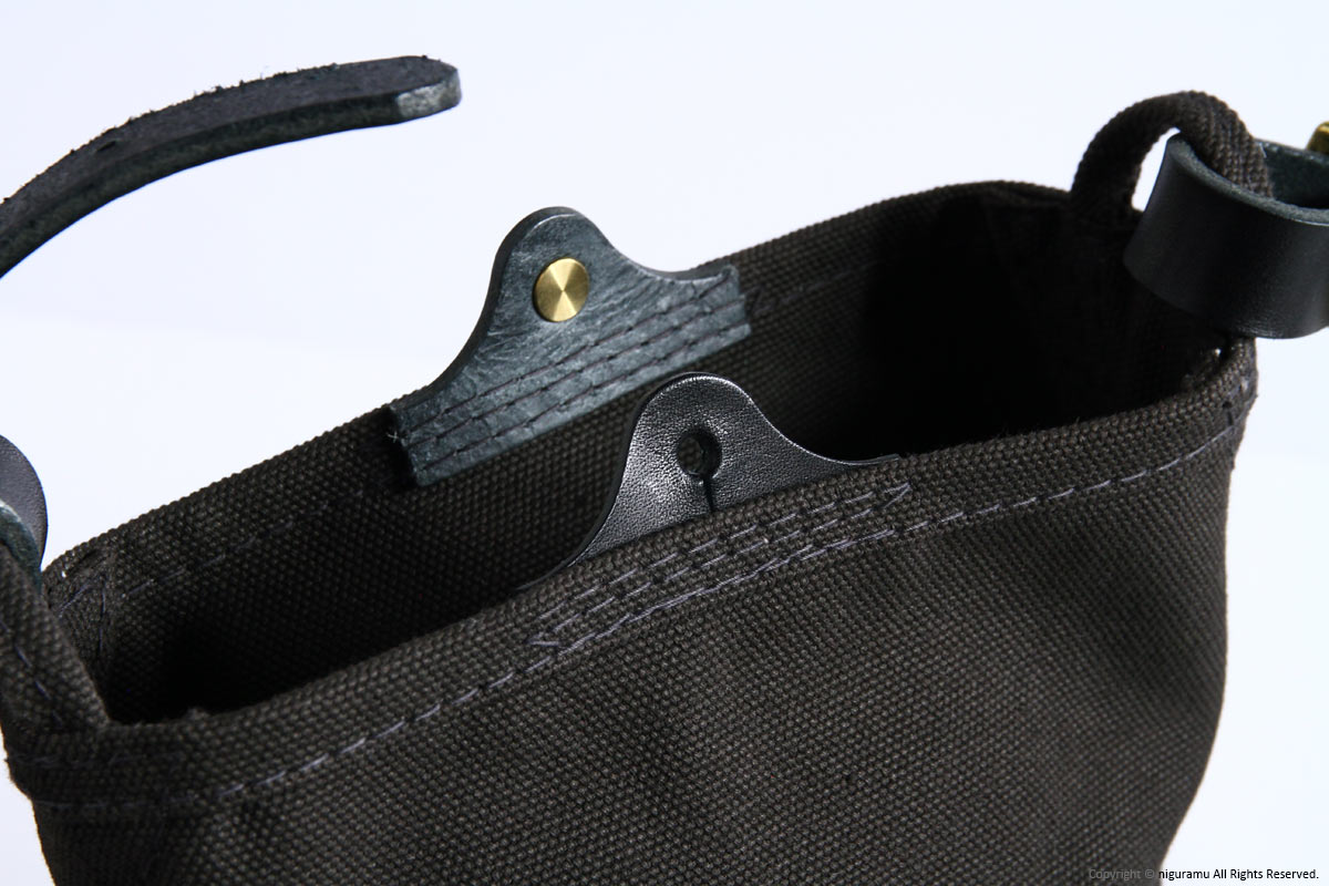 | 材質 | 倉敷帆布4号, 牛革 (ショルダーストラップ, スナップ), 真鍮 (バックル, ギボシ) |