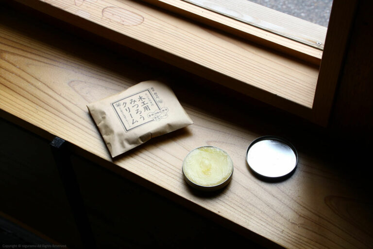 - 乾いた布やスポンジにみつろうクリームを馴染ませ、軽く広げるように塗ります。