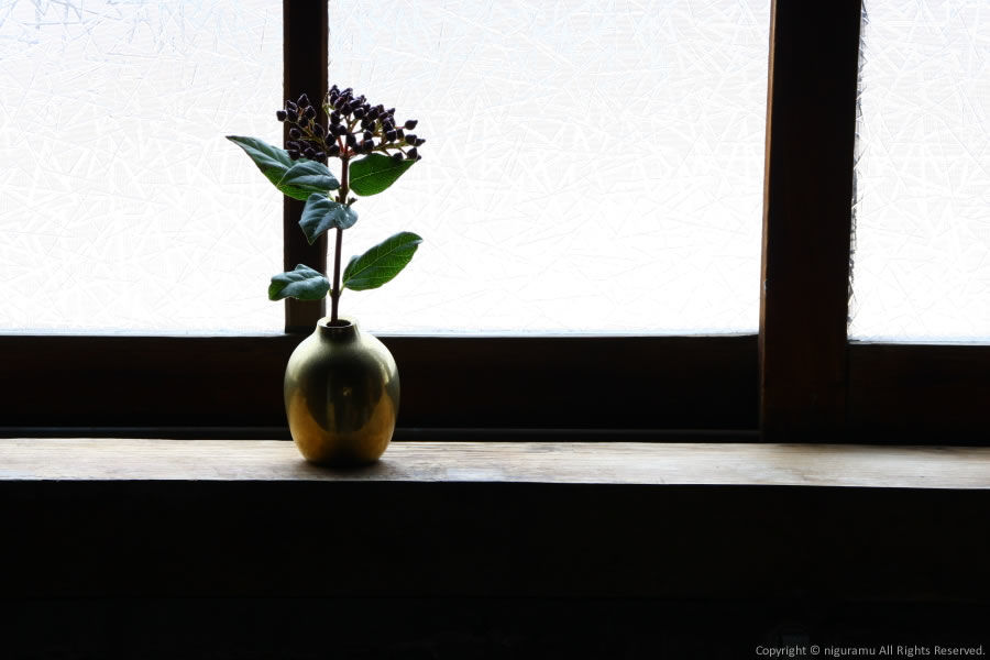 挿した花を引き立たせ、鋳肌の質感と鋳物独特の色味が、落ち着いた雰囲気の小さな空間を演出します。
