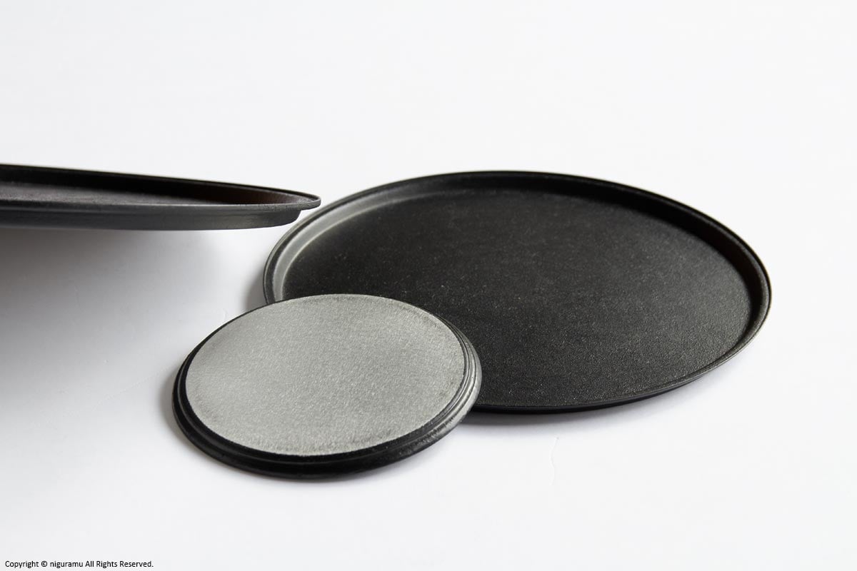 この製品は漆を焼き付けて仕上げています。職人の手作業のため、ムラがある場合もございます。 - 黒砂仕上げ:
