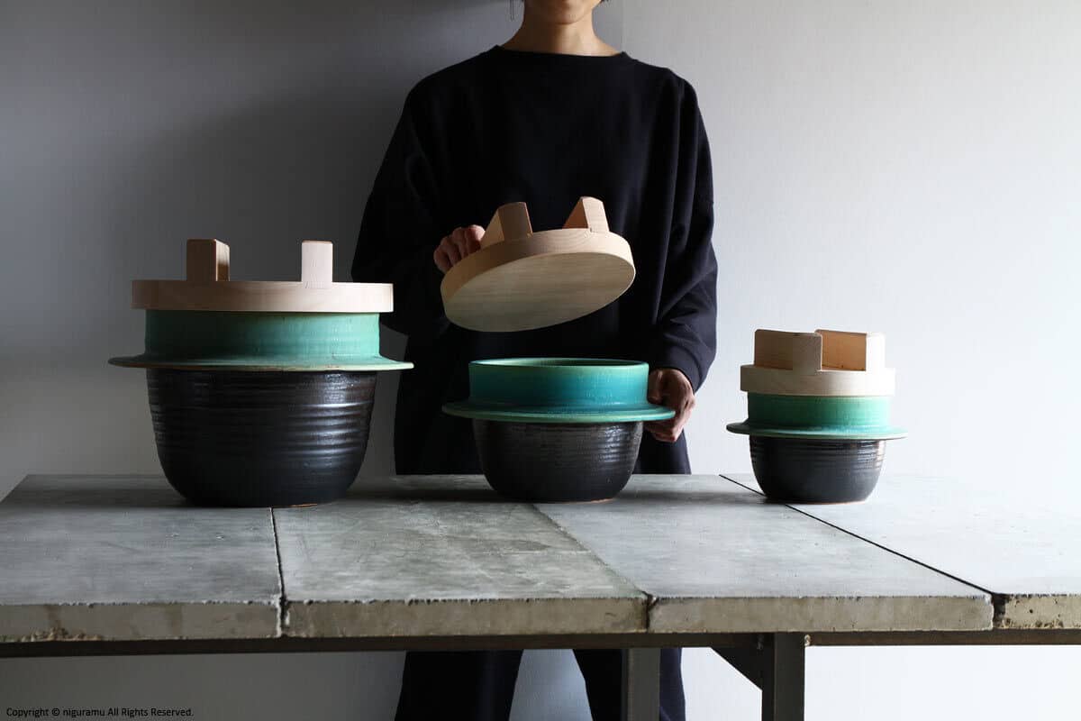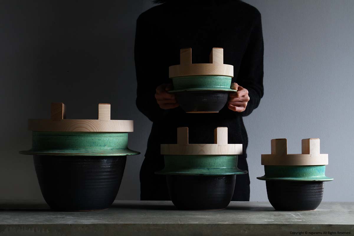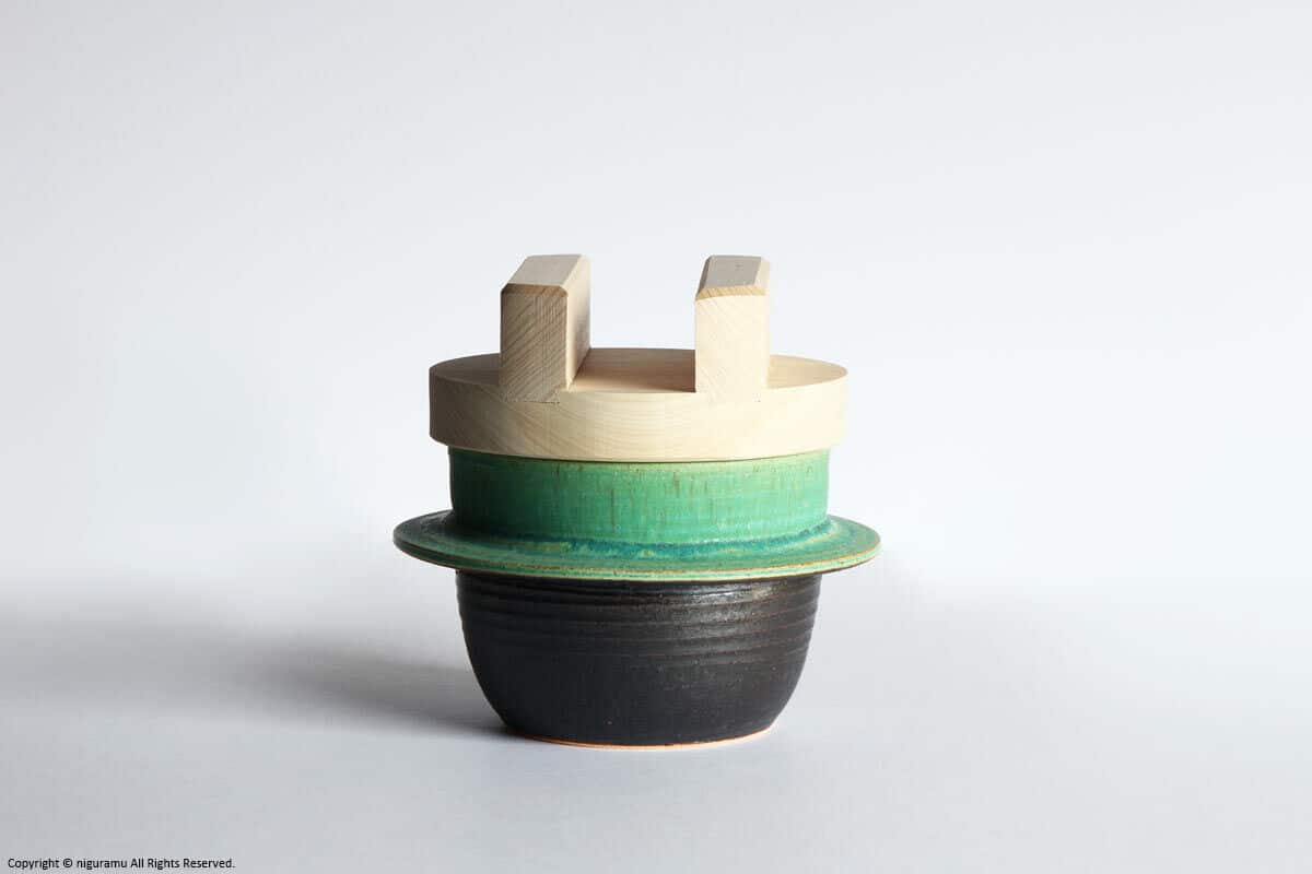 | 材質 | 陶器(釜本体), 木(蓋) |