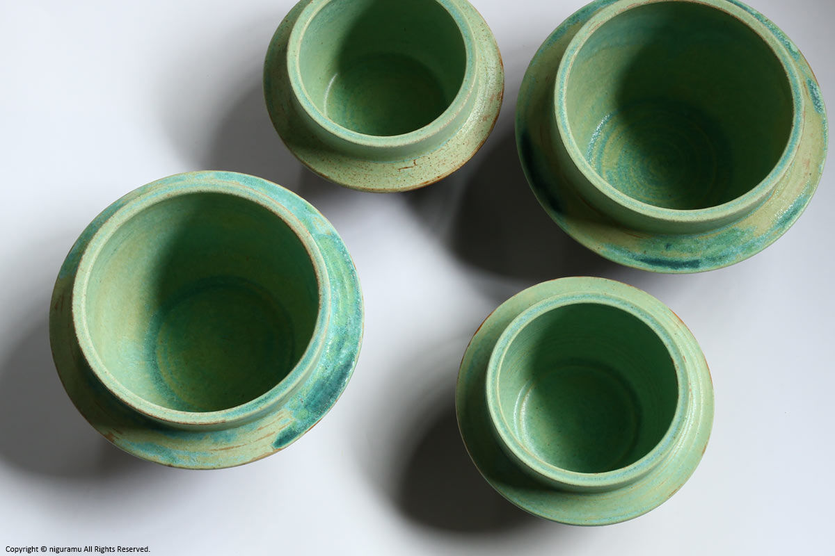 釉薬は光沢のがあるもの、少しマットな部分があるものもございます。味わいとしてお楽しみください。 - 陶器製のためIHでの使用はできません。