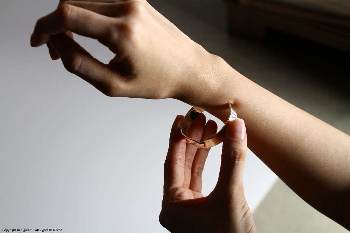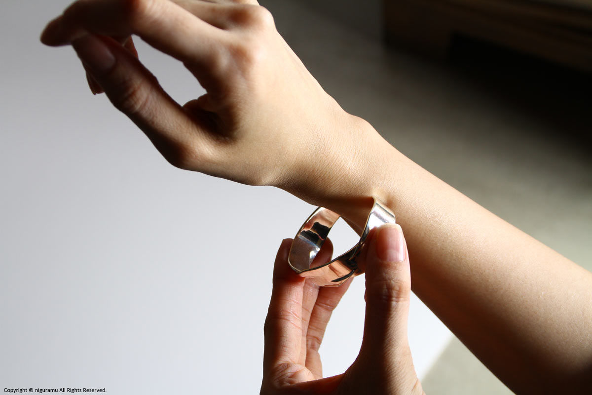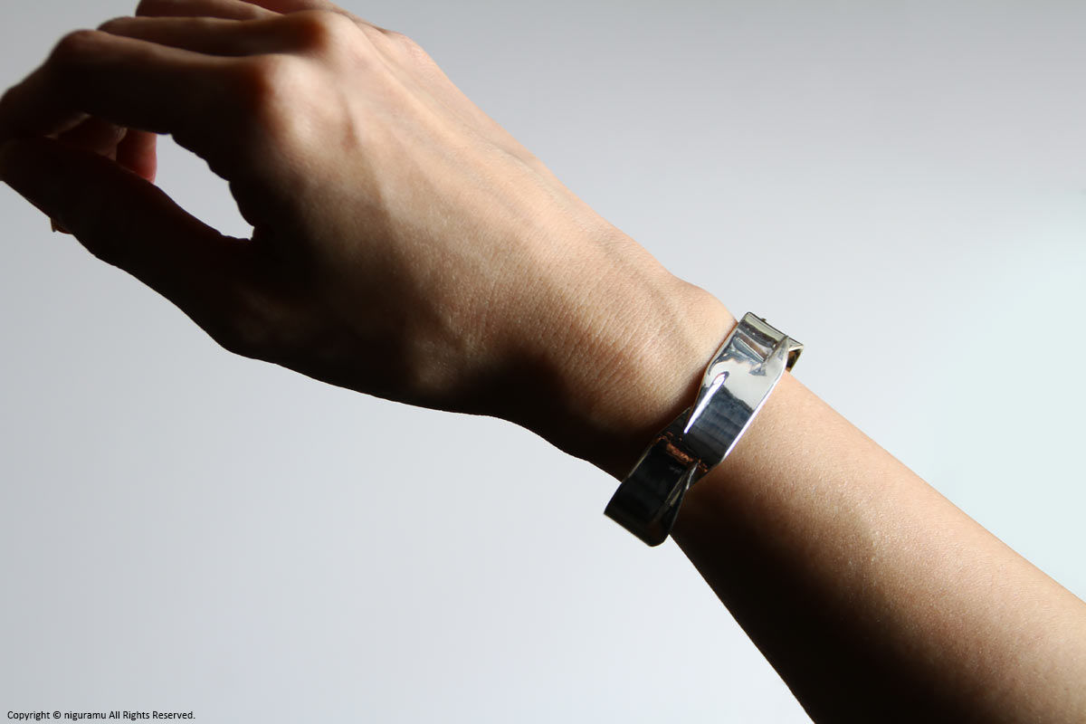 - 手首回りに合わせた多少のサイズ調整は可能ですが、無理に広げたり縮めたりを繰り返すと、変形及び破損の原因となります。