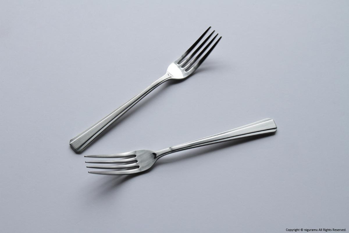 フォークの刃先は長さがあり、肉料理はもちろんですがパスタにもつかえる使い勝手の良いスタンダードな形。