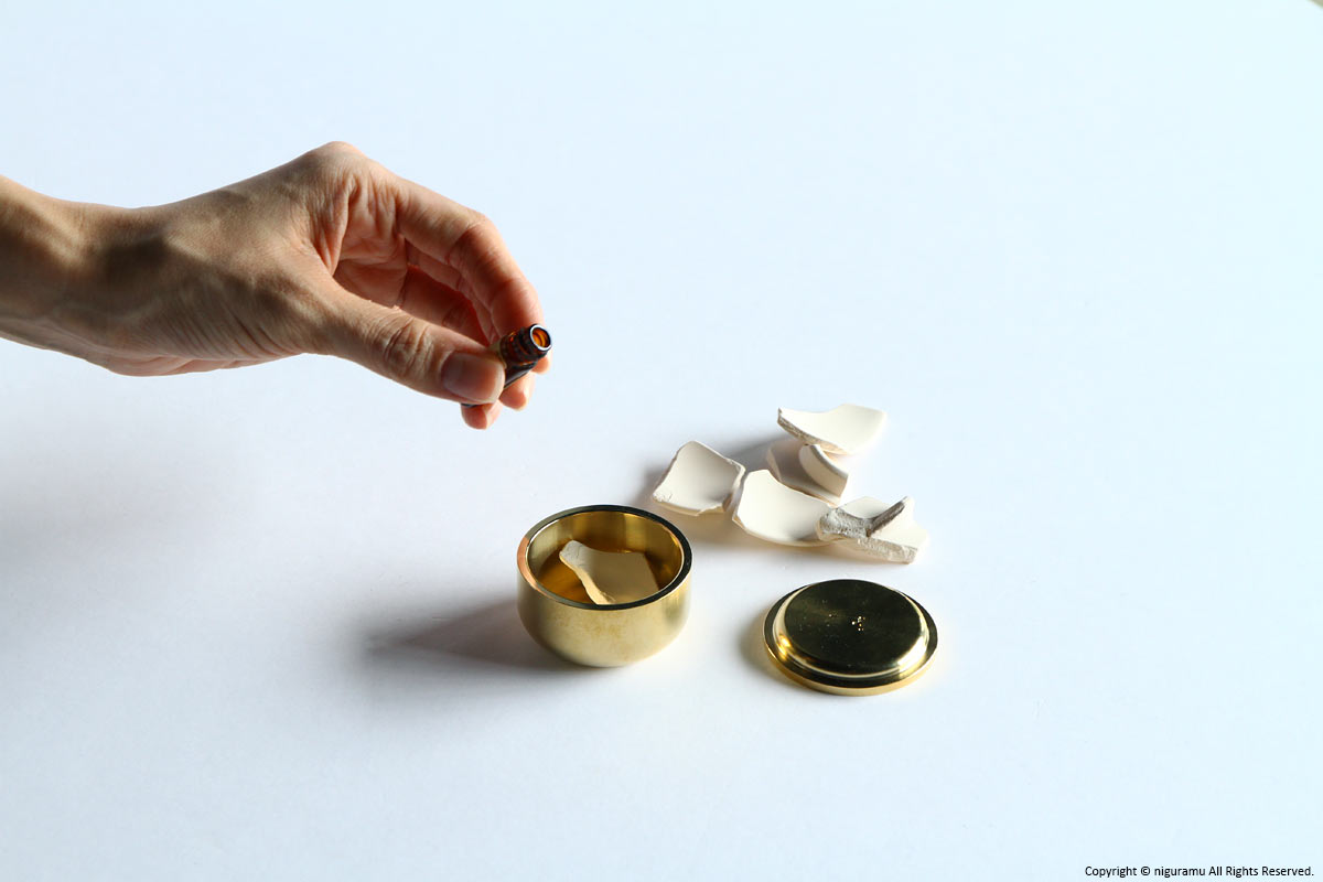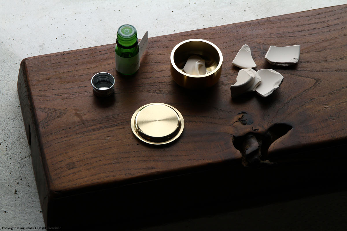 - 真鍮製品であるアロマケースは酸化による経年変化で変色します。場合によっては緑青がでることもあります。変色・汚れが出て気になる場合は、市販品の金属用コンパウンドで磨いてください。