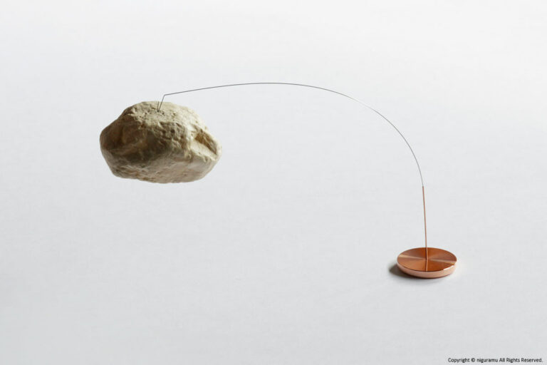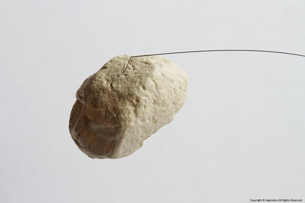 ペーパーストーンは張子で中は空洞です。張子の中に入っている小さな磁石でワイアーにつなげます。