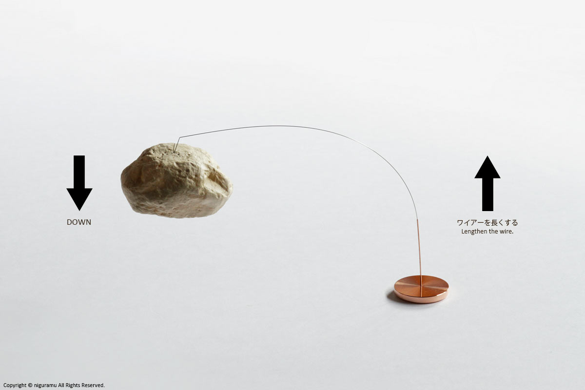 ステンレス線を長くすると、ペーパーストーンは下の位置へ。