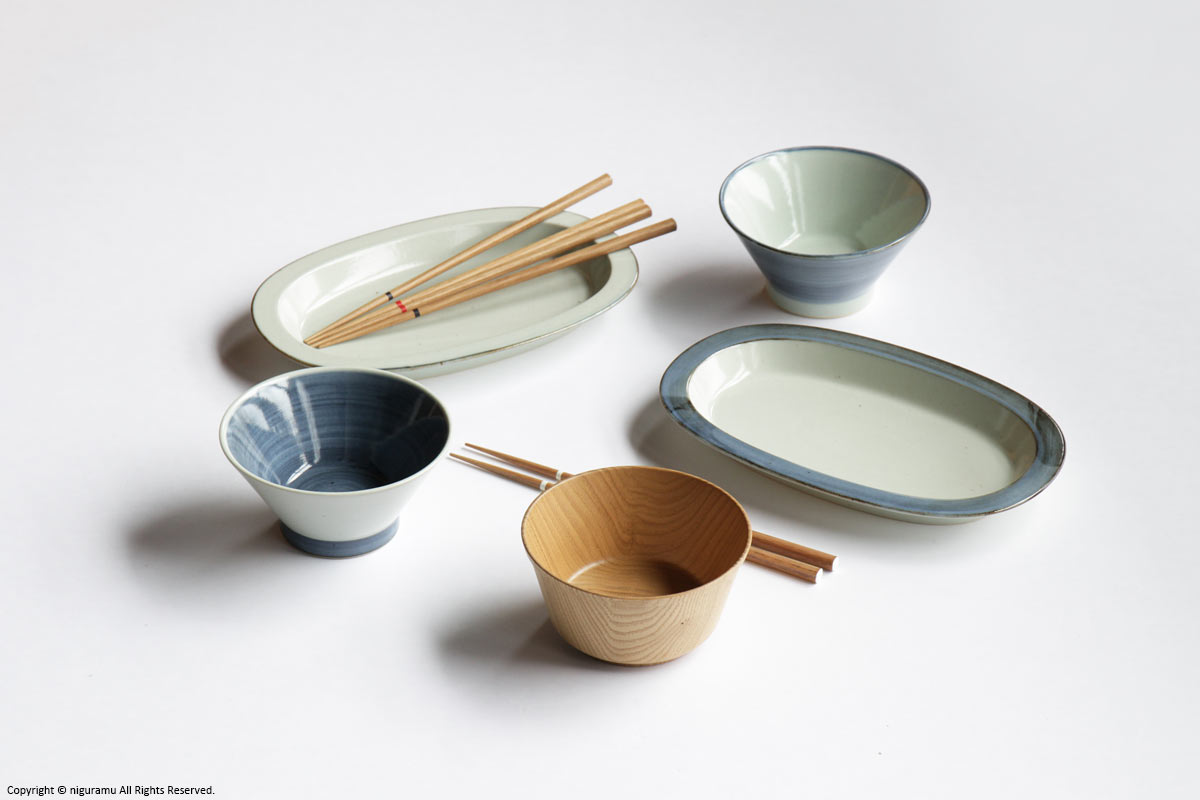 - 磁器製品は素地や釉薬の特性上、形状や質感に多少の違いがでたり、表面に小さな黒点や釉薬上の凹みが生じることがあります。